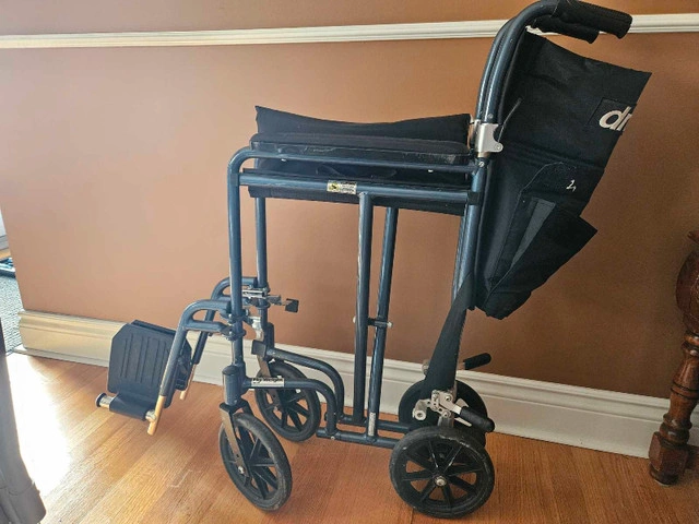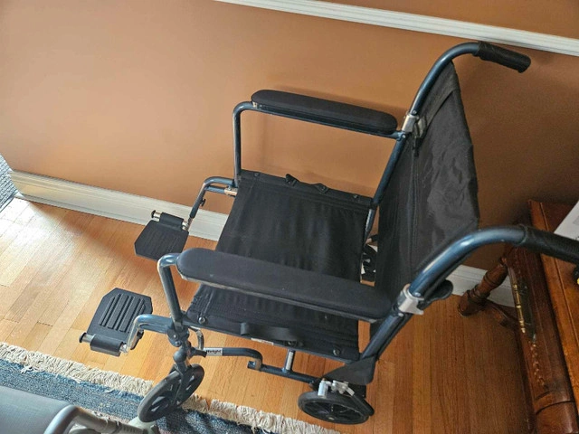 Lightweight and easy to transport, this folding wheelchair is perfect for trips, appointments, or daily use. Comes with swing-away footrests, comfortable padded armrests, and folds compactly for easy storage in your car or closet. Rear right wheel is a little stiff but still works well. Fabric is in great shape. Great for caregivers or anyone needing a portable mobility solution! For Sale By: Owner