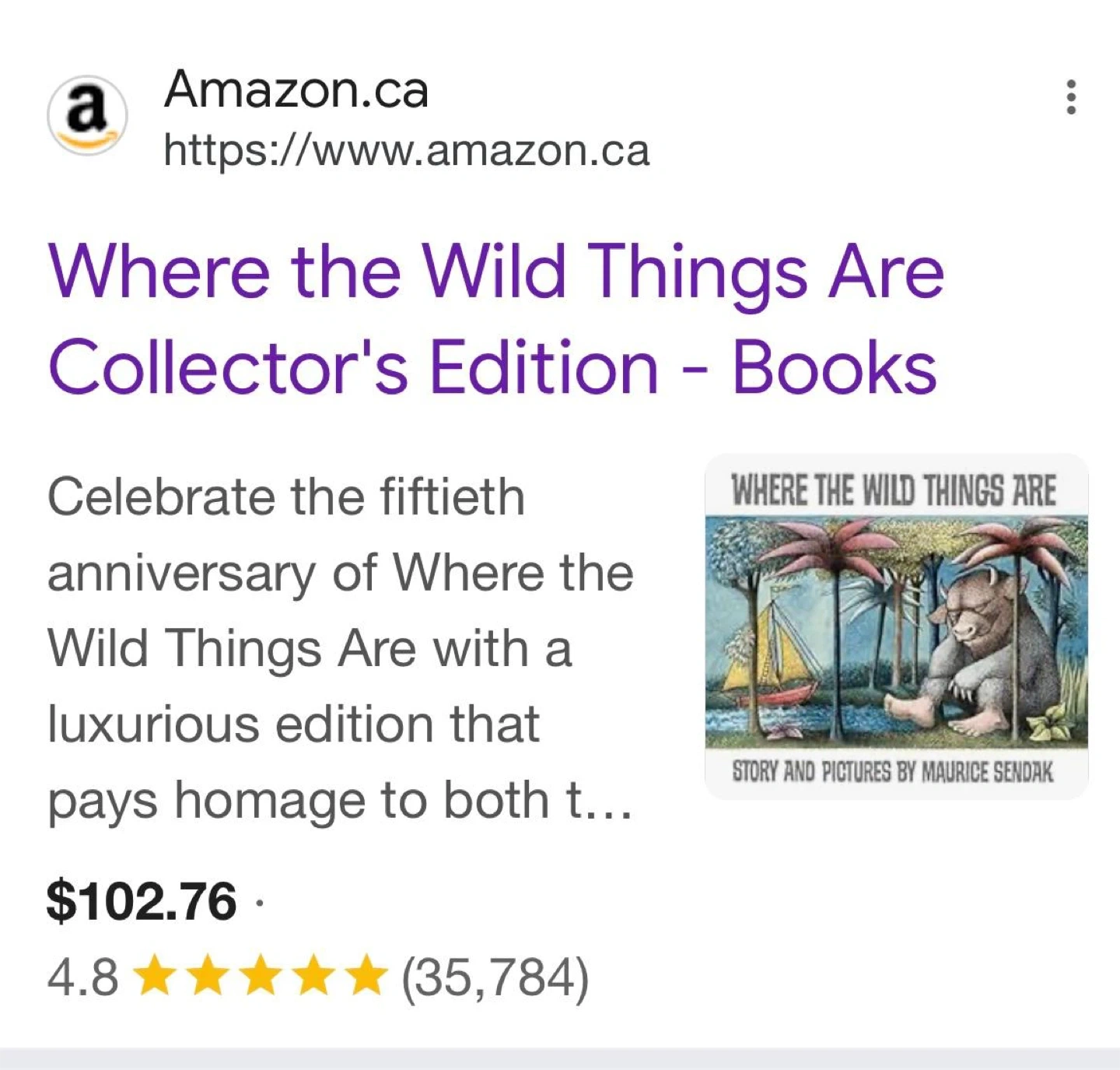 Please check eBay prices in pictures Hard cover Selling a Fiftieth Anniversary Edition of 'Where the Wild Things Are' by Maurice Sendak This book is a winner of the 1964 Caldecott Medal