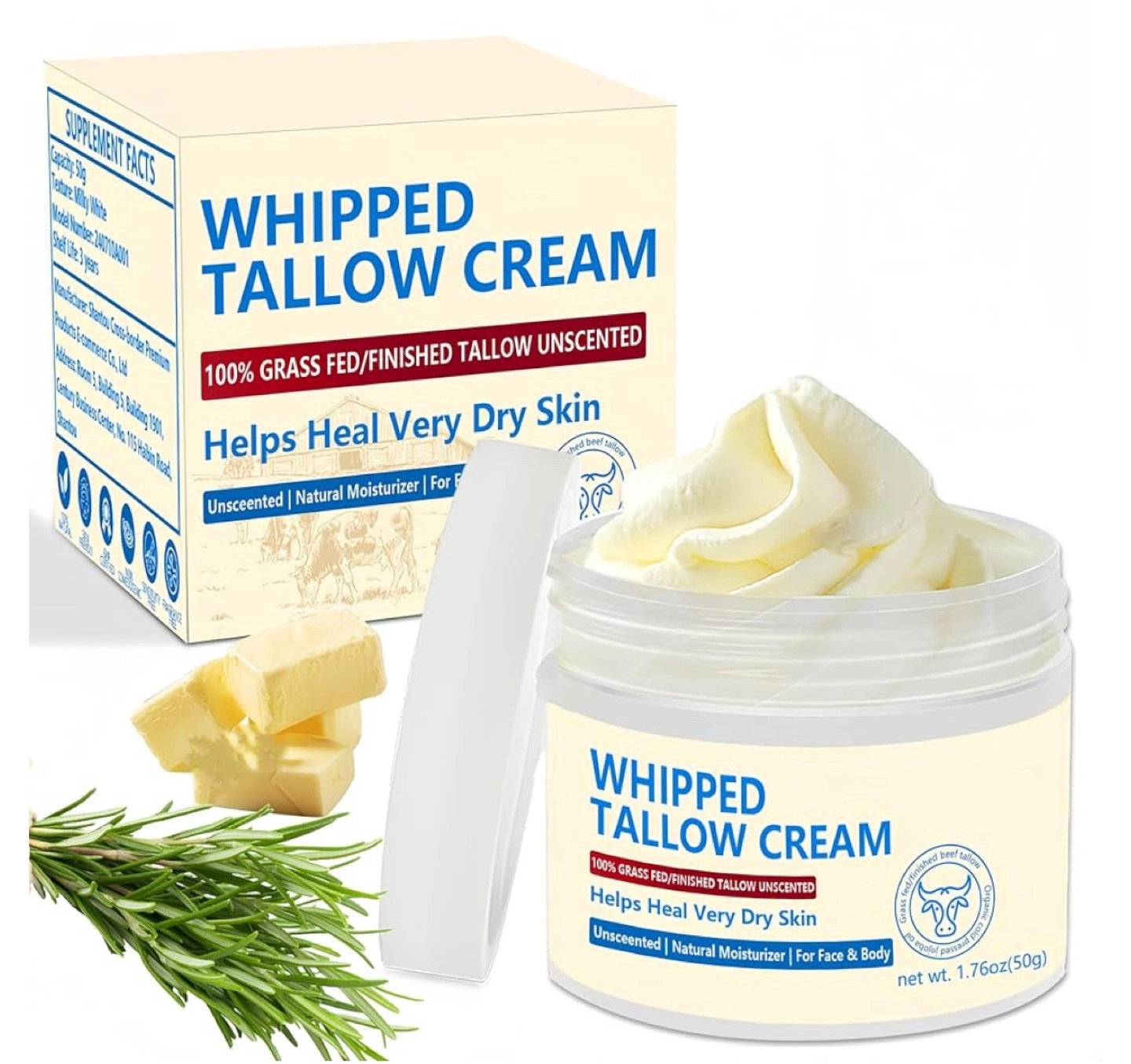 I'm selling a jar of Whipped Tallow Cream, a natural and unscented moisturizer perfect for face and body! It's made with 100% grass-fed tallow and is designed to help heal very dry skin. The cream contains vitamin E, fatty acids, and a variety of minerals to deeply hydrate your skin. It's also free of toxic chemicals and contains organic cold-pressed jojoba oil. Net weight: 1.76oz (50g) Meet up & cash only pls Meet up is in Nobleton