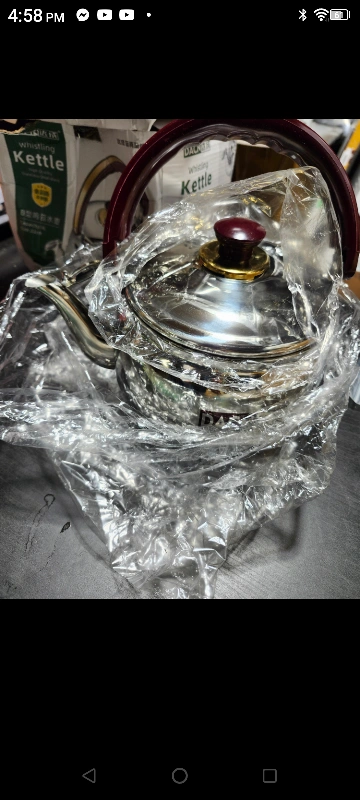 Selling a stainless steel whistling kettle. It's a 4L capacity and has an anti-scald handle. Suitable for a variety of stoves and heats water quickly! and it whistles new in box retail 99.99+