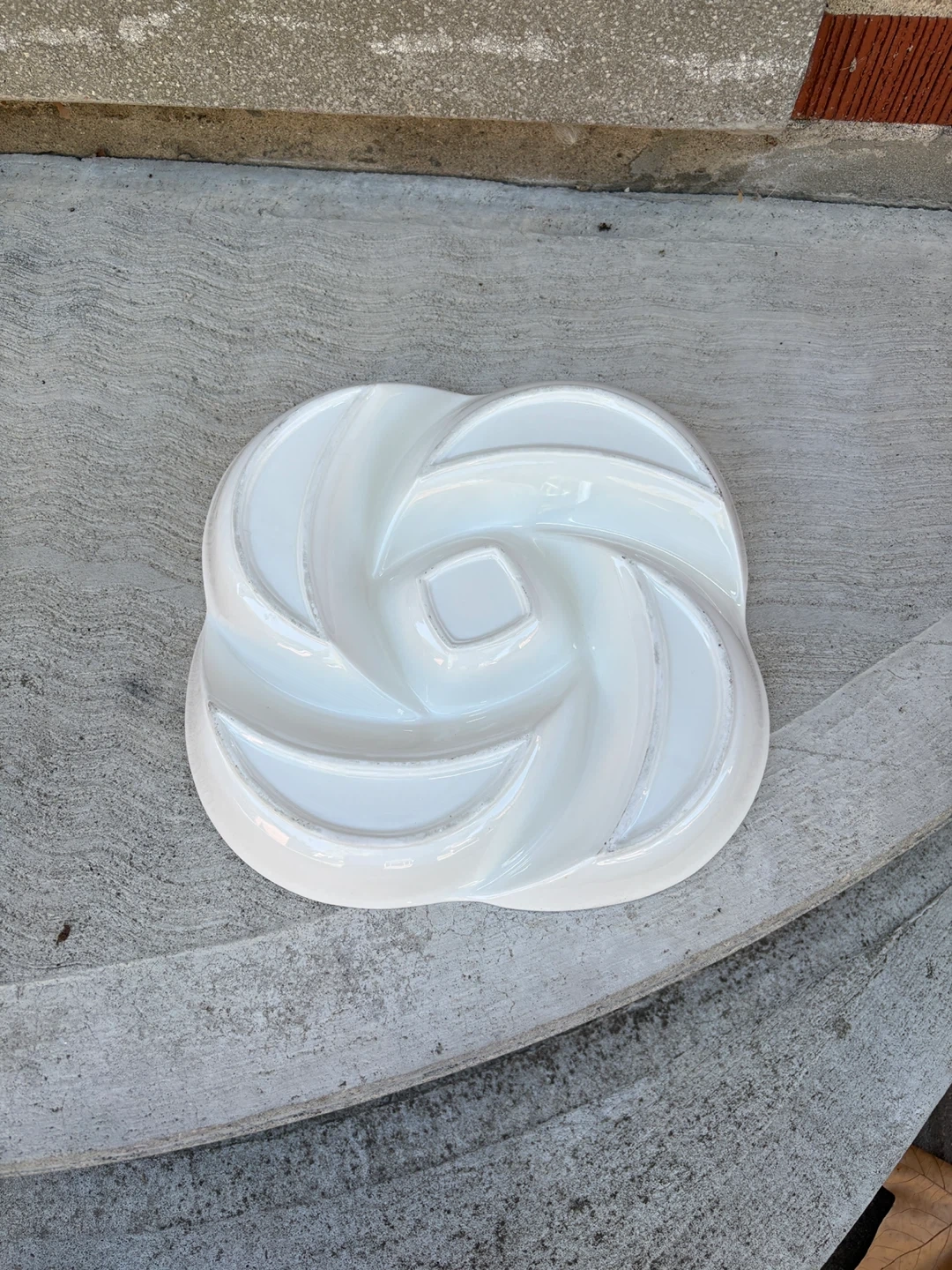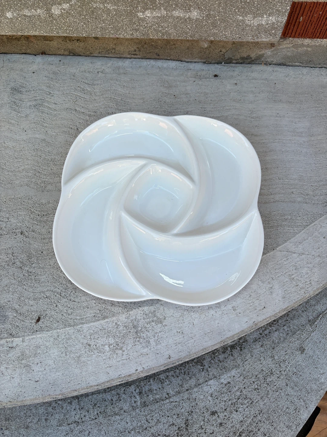 Selling a lovely white ceramic serving platter! It's in great condition and perfect for serving snacks or appetizers at your next gathering. The unique design adds a touch of elegance to any table setting