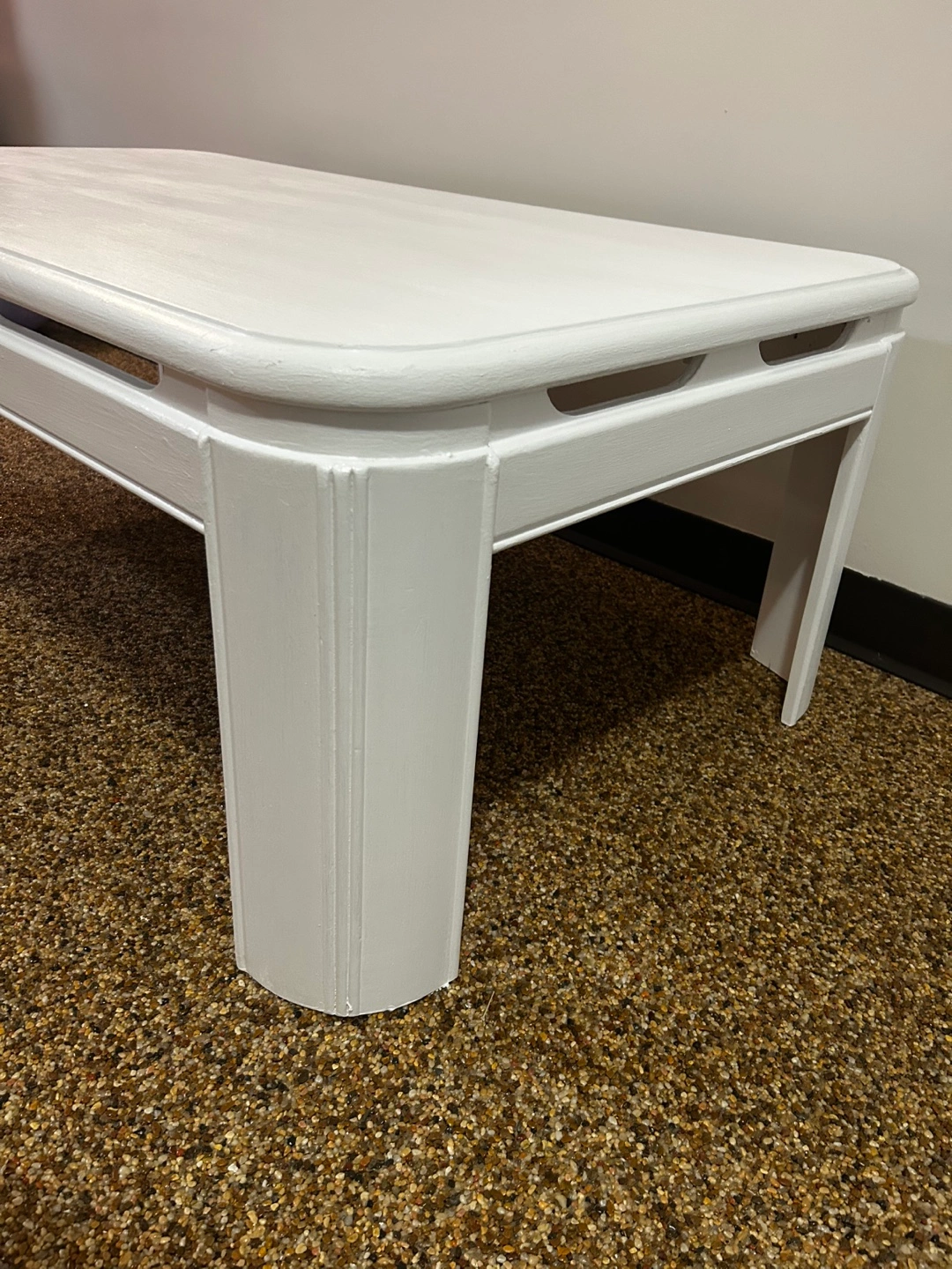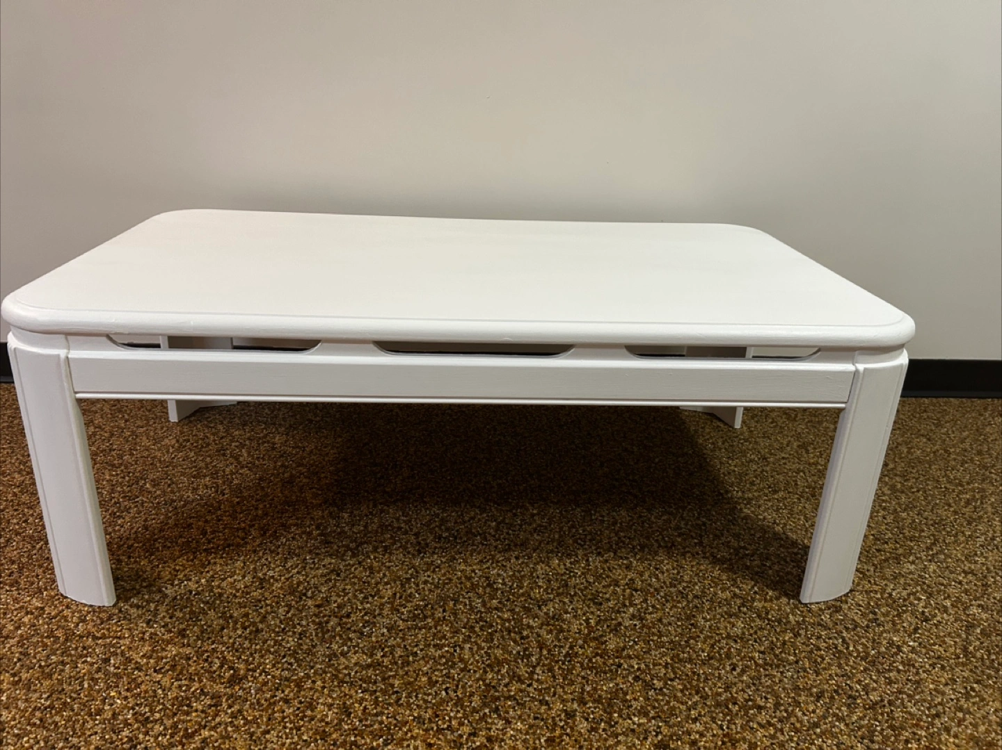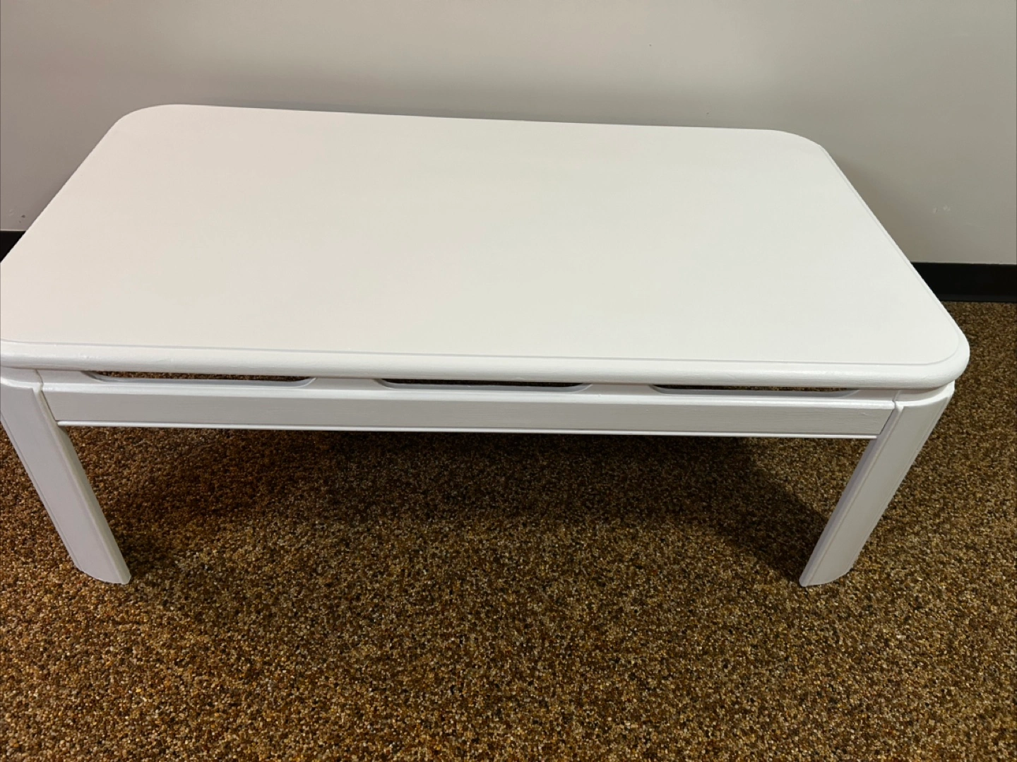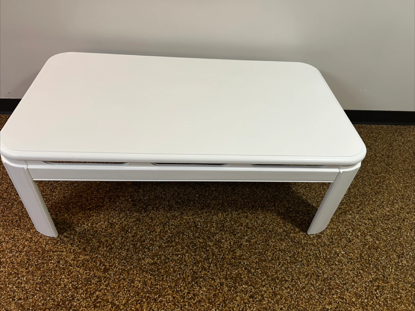 A simple white coffee table, perfect for any living room or space! It's in great condition and ready for a new home Size : 49” Long x 28” wide x 18”/2 height Smoke free home , pick up only 🔴NO HOLDS -🔴FIRM PRICE 🔴CASH ONLY