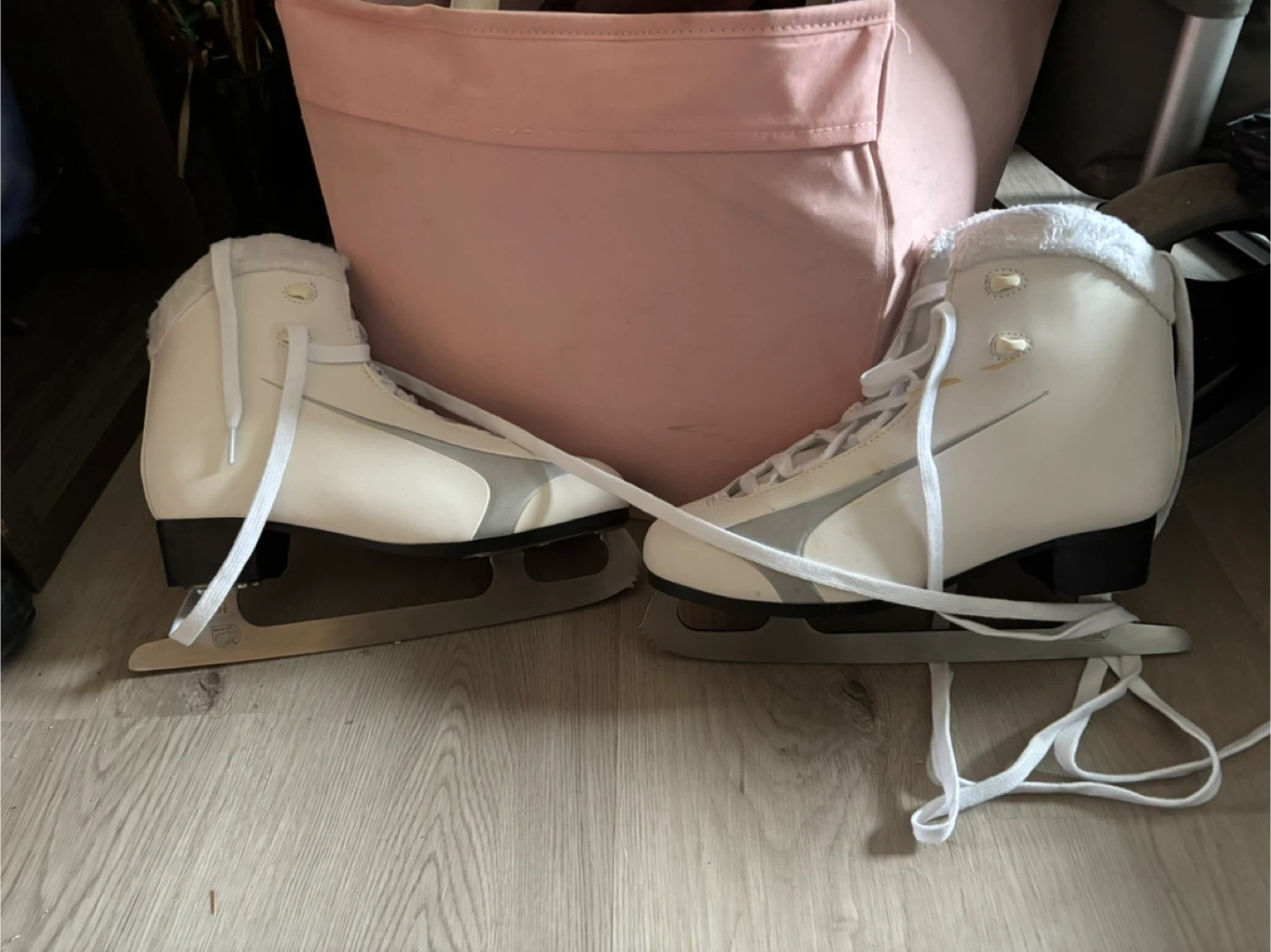 Never worn size 8! Selling a pair of white figure skates. They are in great condition and ready for the rink! Perfect for beginners or recreational skaters