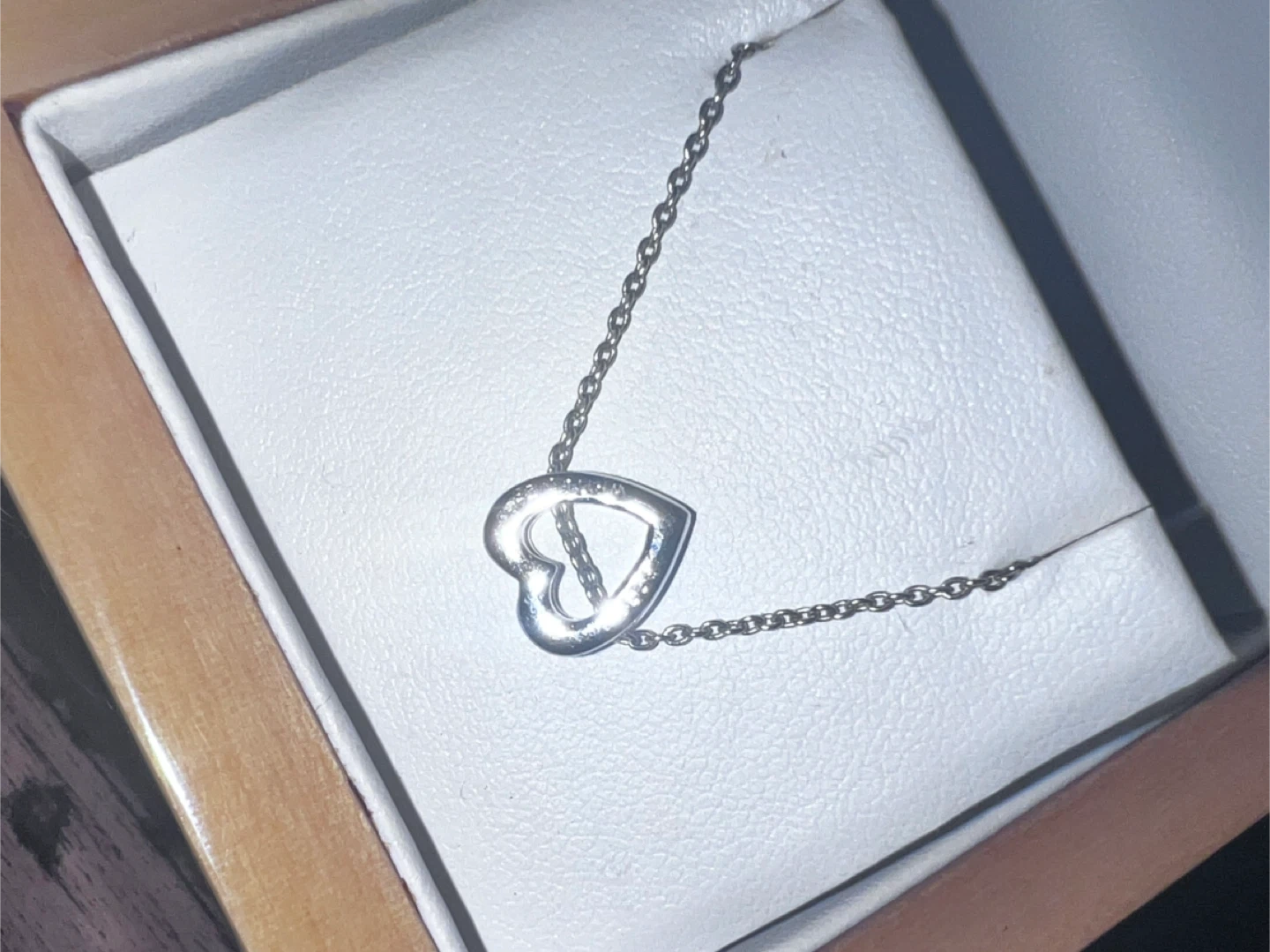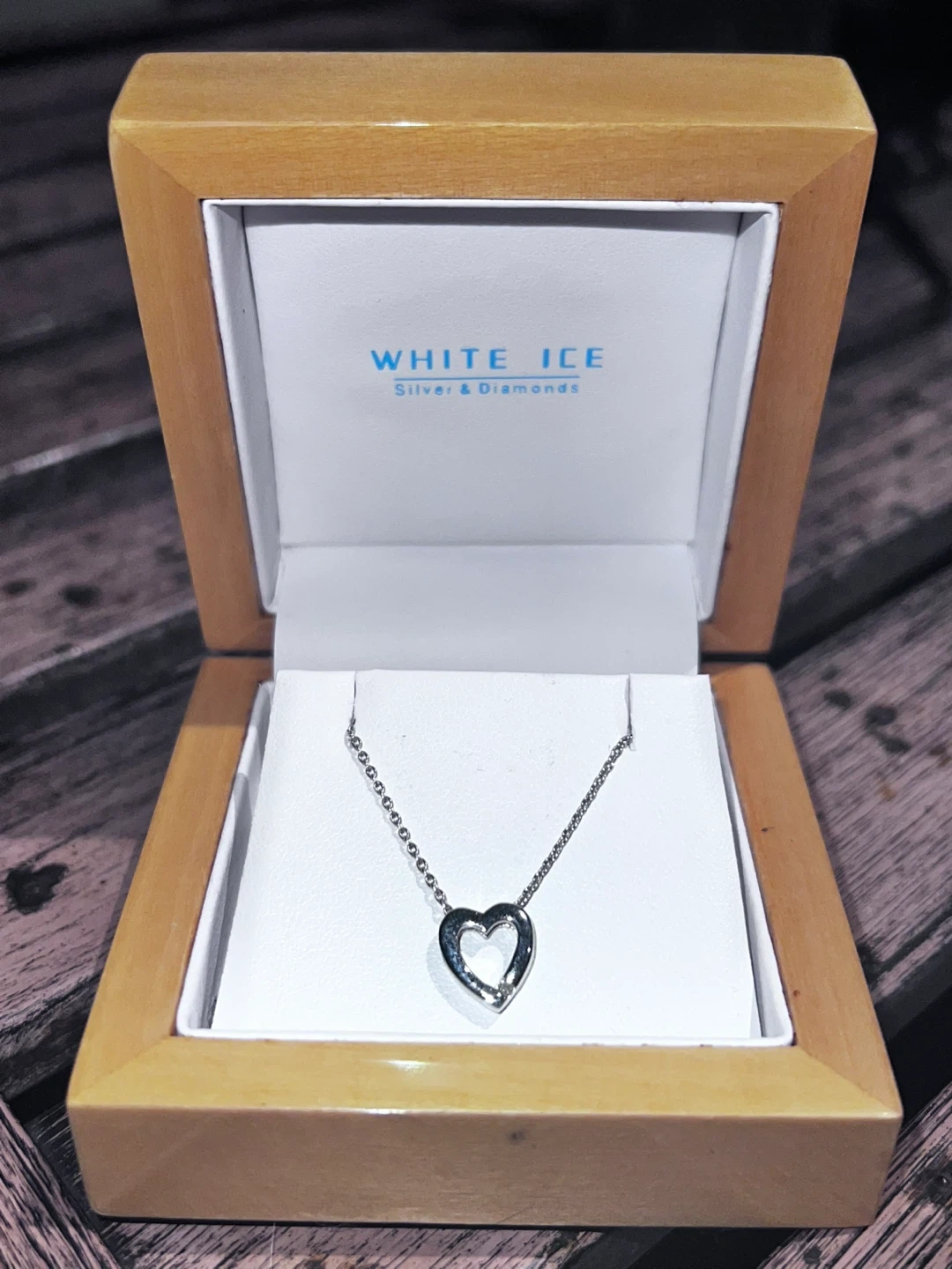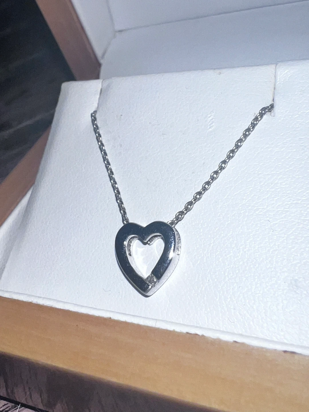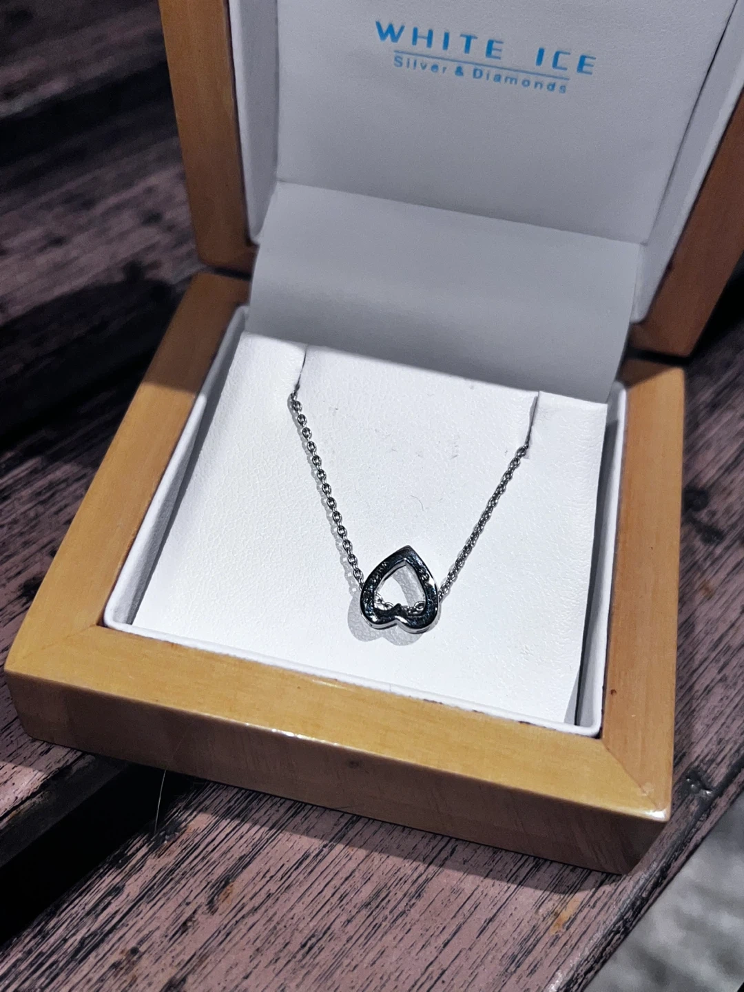 Selling a lovely White Ice heart-shaped necklace with a small diamond at the bottom (real). It's a beautiful piece of jewelry, perfect for adding a touch of elegance to any outfit. Comes in its original box!