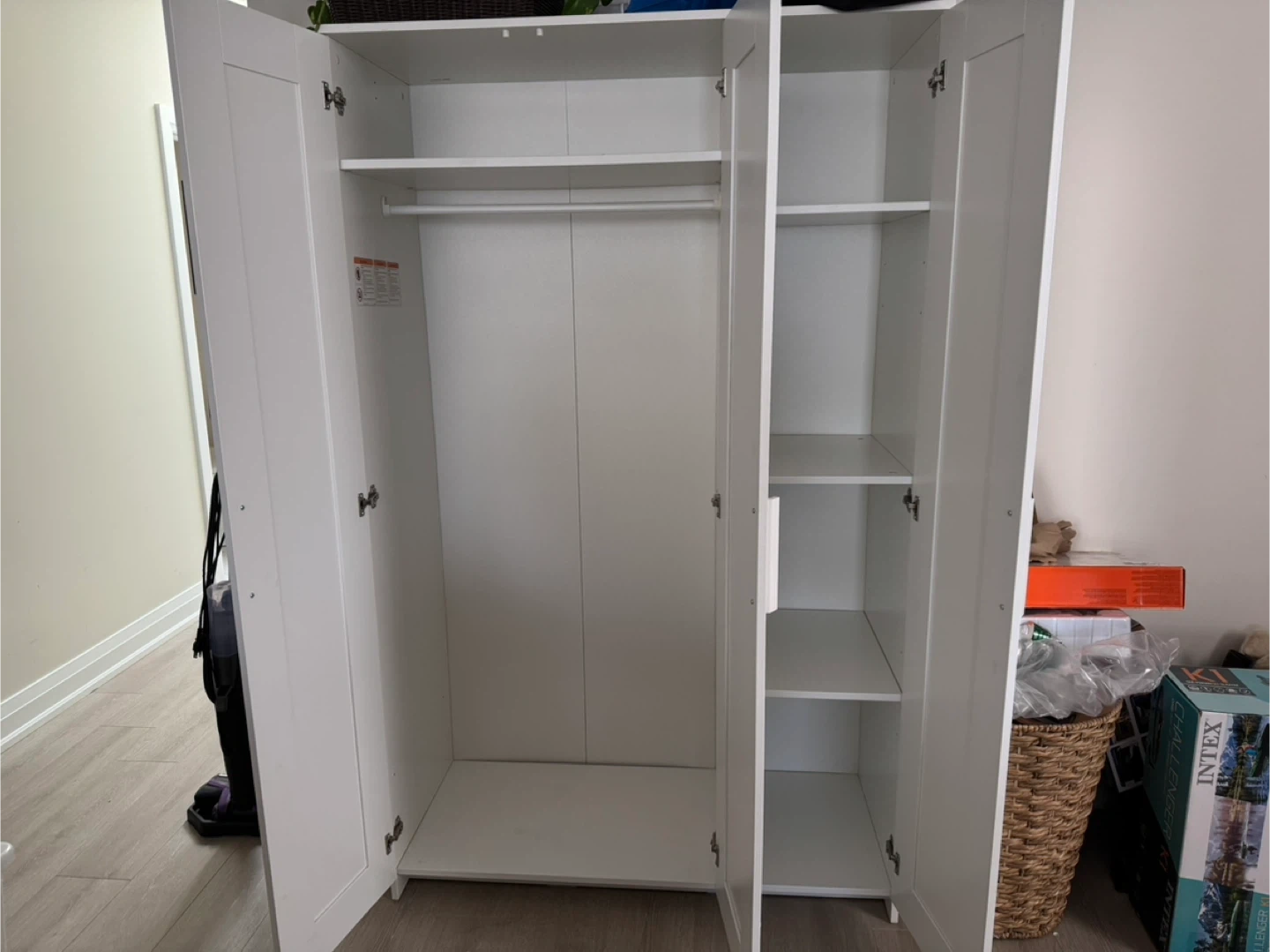 White Ikea Brimnes Wardrobe with Shelves and Rail
