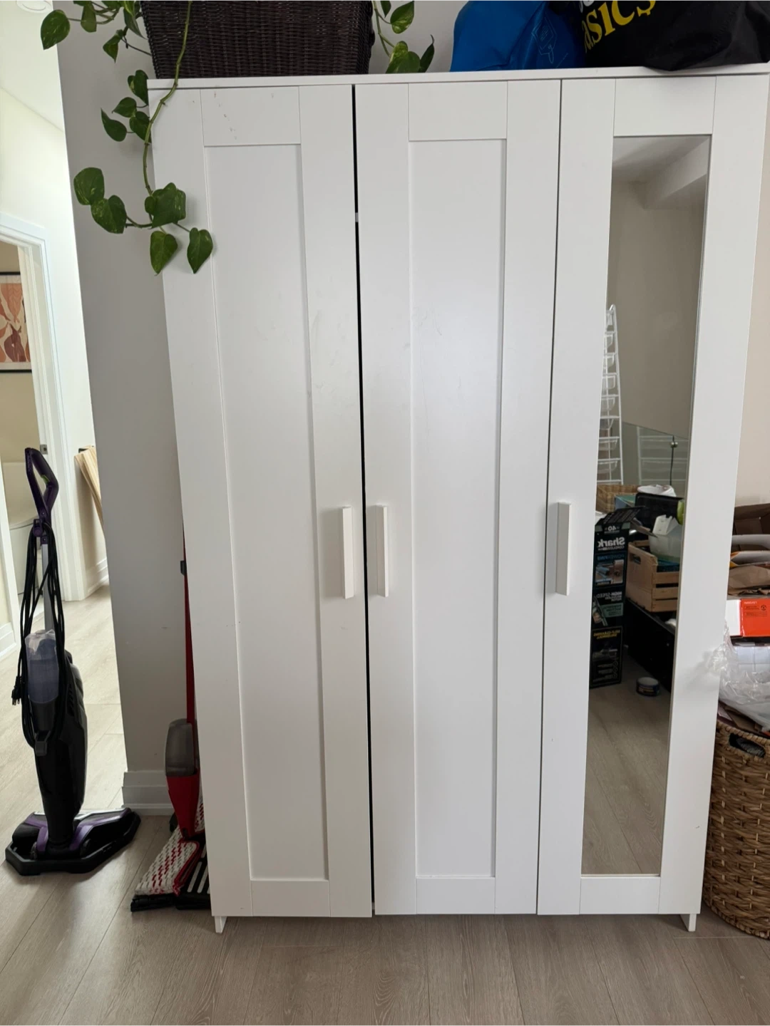 Selling a white Ikea Brimnes wardrobe with shelves. It's in great condition and ready for a new home. Perfect for adding extra storage to any room!