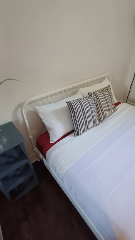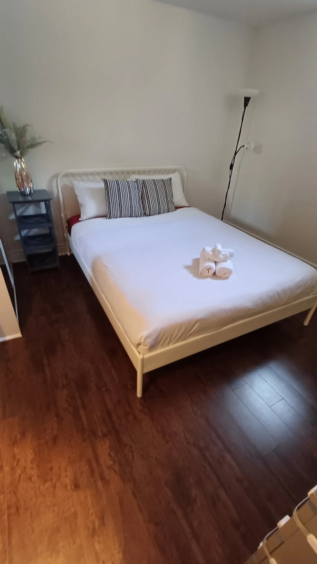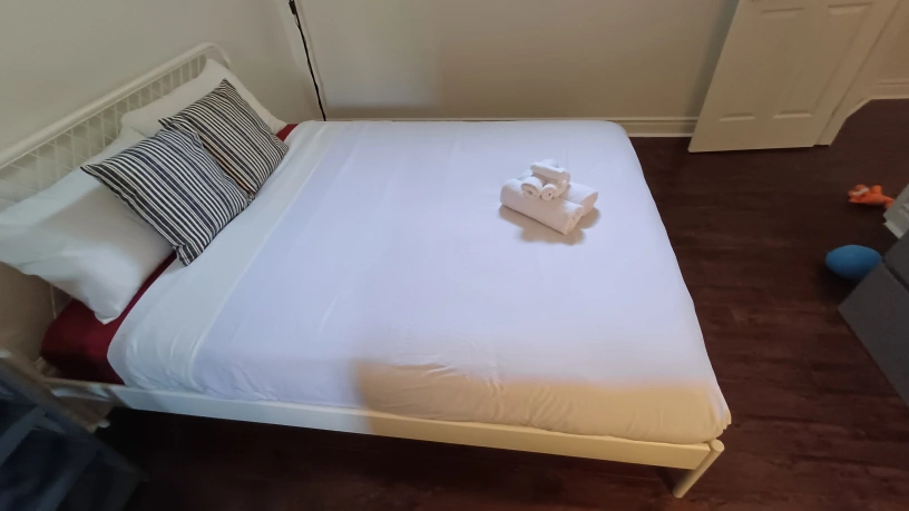 Selling a bed frame that's in great shape! It's a white metal frame and comes with the pillows shown in the pictures. Perfect for a bedroom refresh! Queen size. 70 Dollars for Bed Frame, slats and Mattress 1. Free Delivery available for Frame and Slats within Georgetown 2. Can deliver Frame and Slats to some areas of Brampton and Milton for 10 dollars extra 3. No delivery for mattress -must pickup yourself