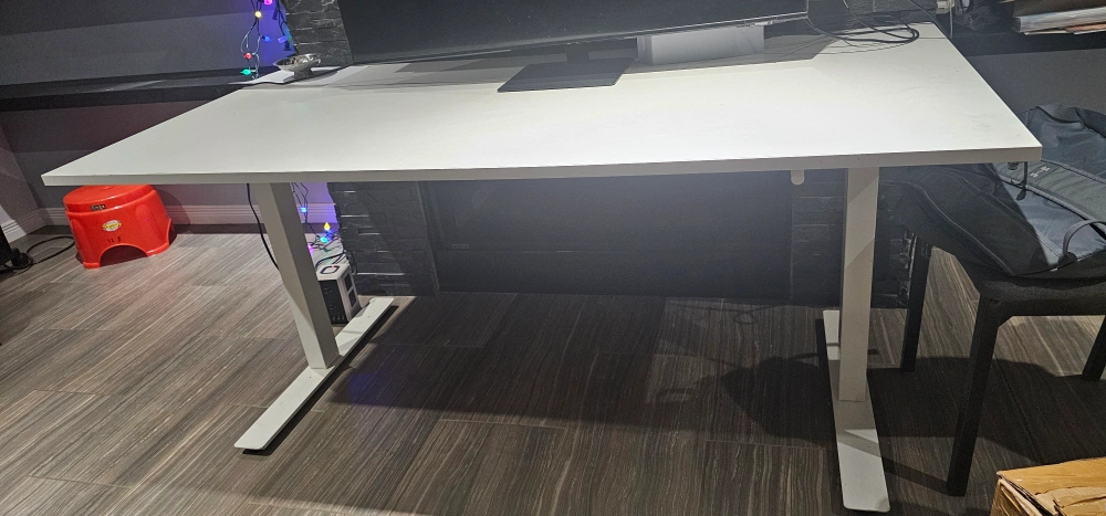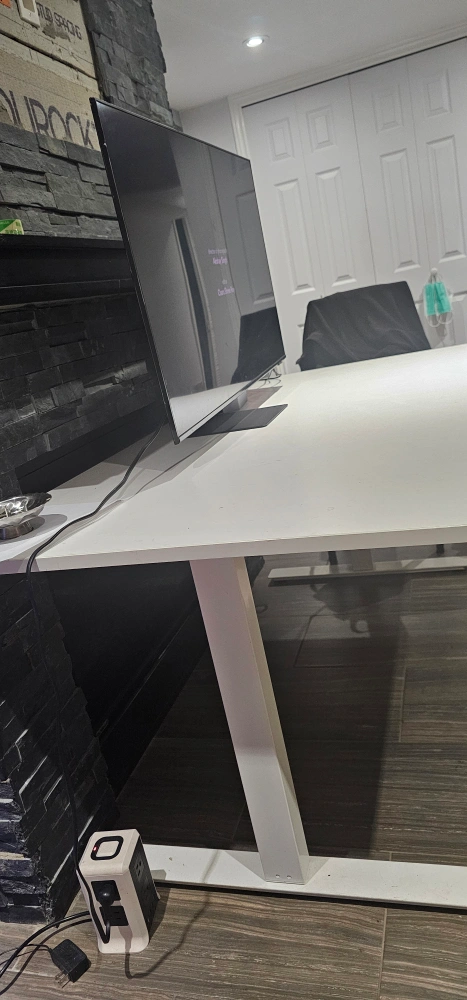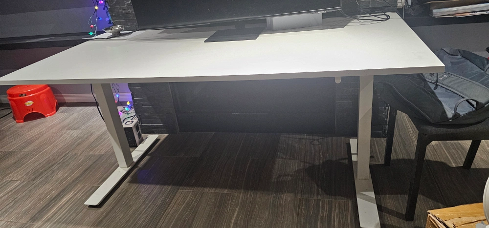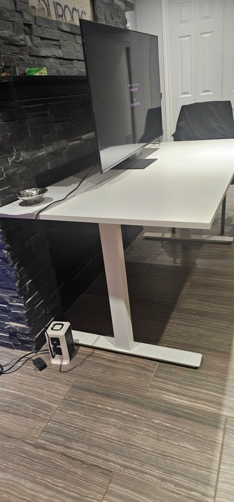 Selling a white standing desk. It's in great condition and ready for a new home. Perfect for setting up a home office. Dimensions length - 155cms breadth - 80cms Height is adjustable . Perfect for office set up ,TV set up upto 75" Used for 10months .