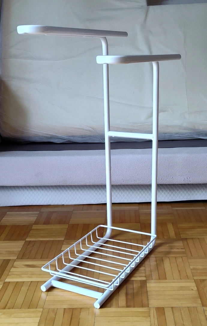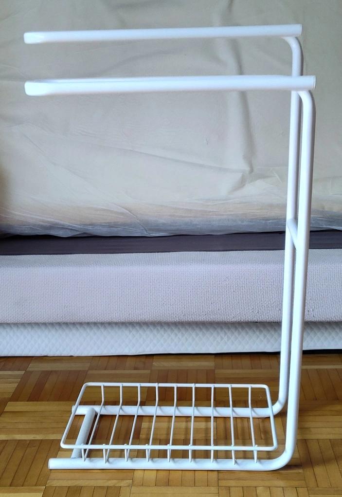 Here's a simple white towel rack, perfect for adding some extra storage to your bathroom or laundry room! It's in great shape and ready for a new home