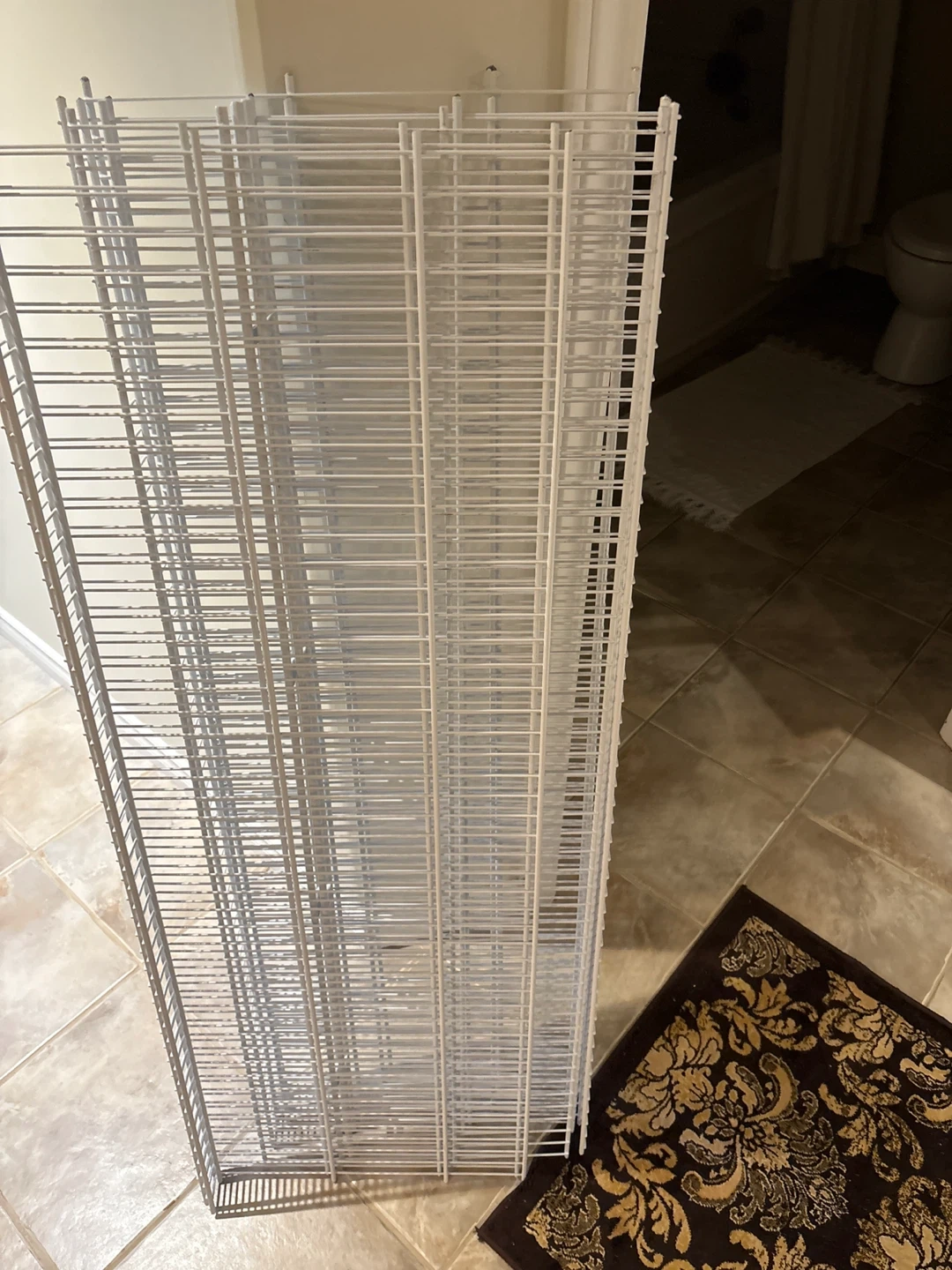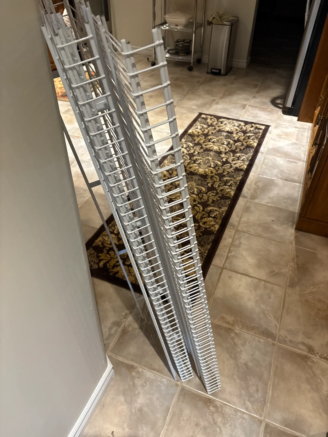 Selling a set of white wire shelving units. They're in great shape and ready to help you organize your space. Perfect for closets, pantries, or anywhere you need some extra vertical storage 7 pieces by four feet