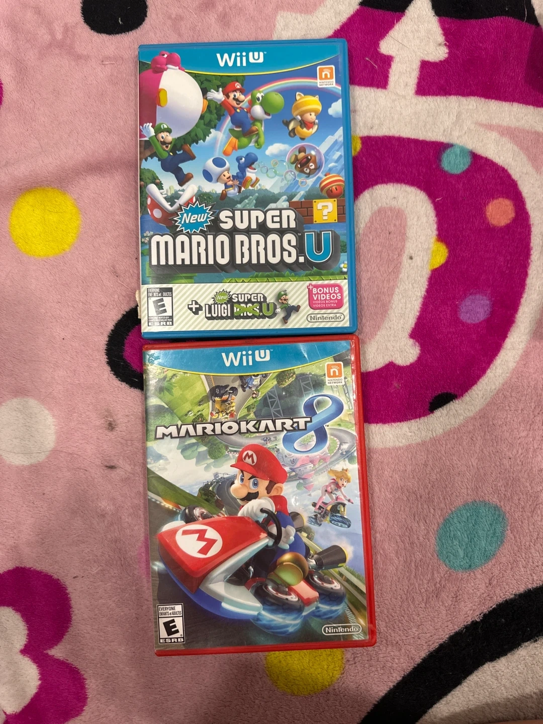 Selling two Wii U games: New Super Mario Bros and Mario Kart 8! Perfect for some family fun or solo gaming adventures