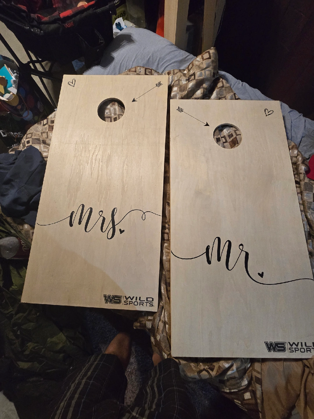 Selling a Wild Sports cornhole game set featuring a Mr. and Mrs. design. This set is perfect for outdoor fun and games with friends and family during a wedding or married life! The boards are very sturdy and ready for some friendly competition
