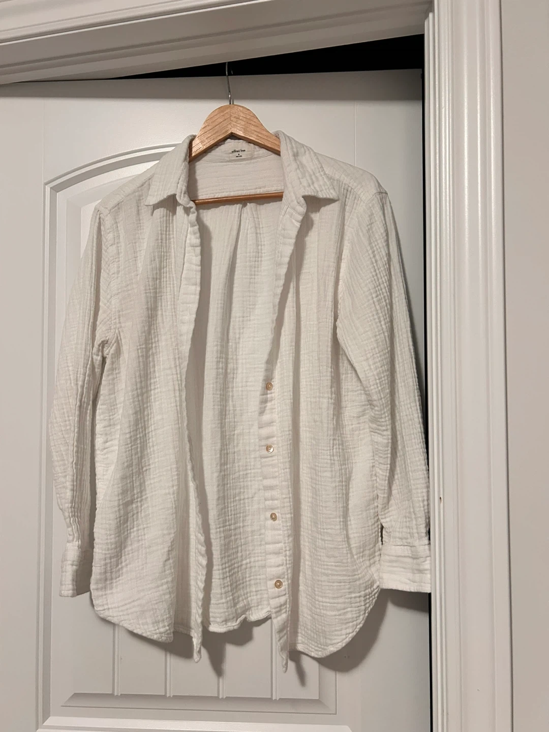 White Wilfred free gauze shirt great for layering or even over a swimsuit. Soft cotton. Size medium.