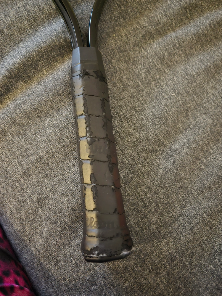 Selling a pair of Wilson Matrix tennis racquets. One has an orange grip, and the other has a black grip. the black grip just needs some grip tape and itll be good as new! cones with 3 balls