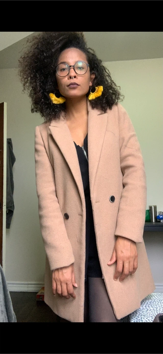 Selling a tan Stradivarius coat in size small! It's a stylish and versatile piece to add to your wardrobe. The coat is in good condition and ready for a new home
