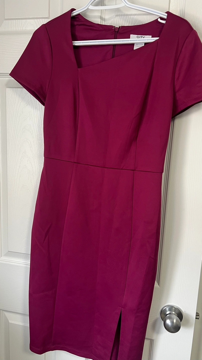 Selling a beautiful burgundy dress from Suzy Shier! It's a stylish piece that would be a great addition to your wardrobe. The colour is a lovely deep burgundy.