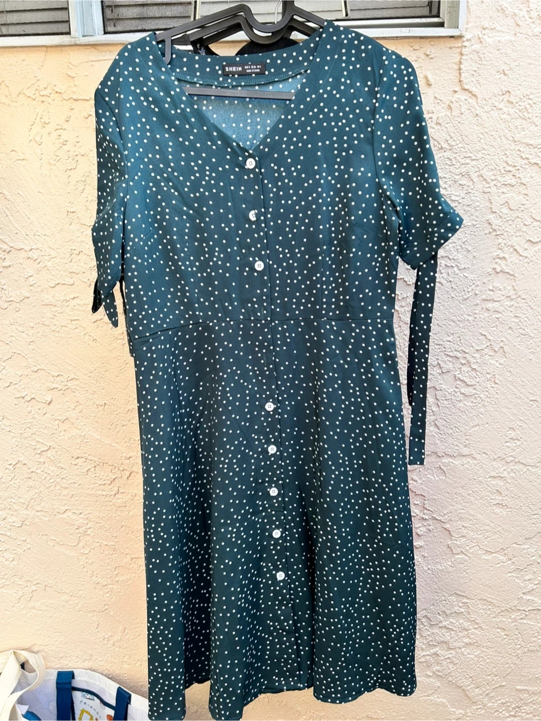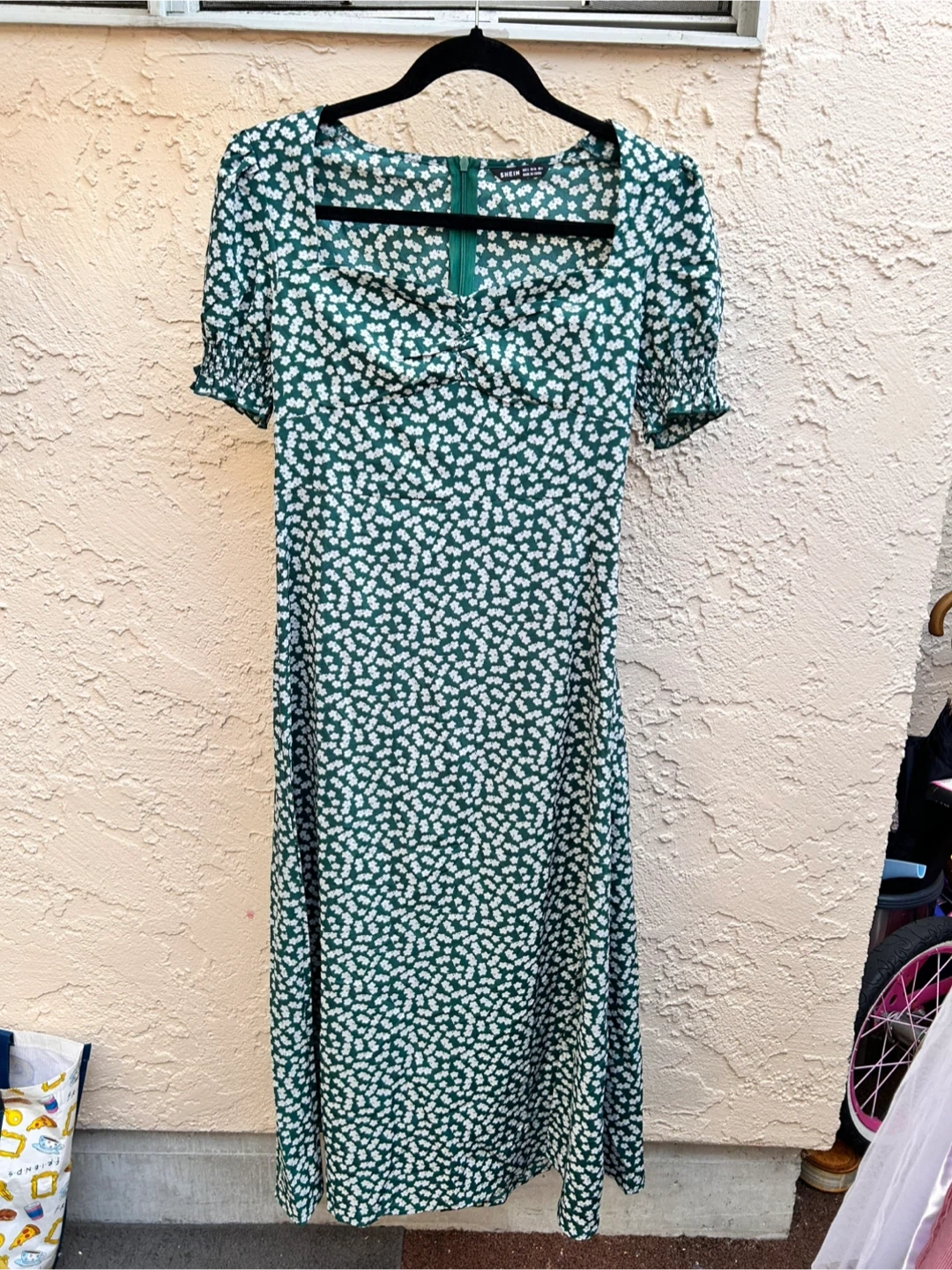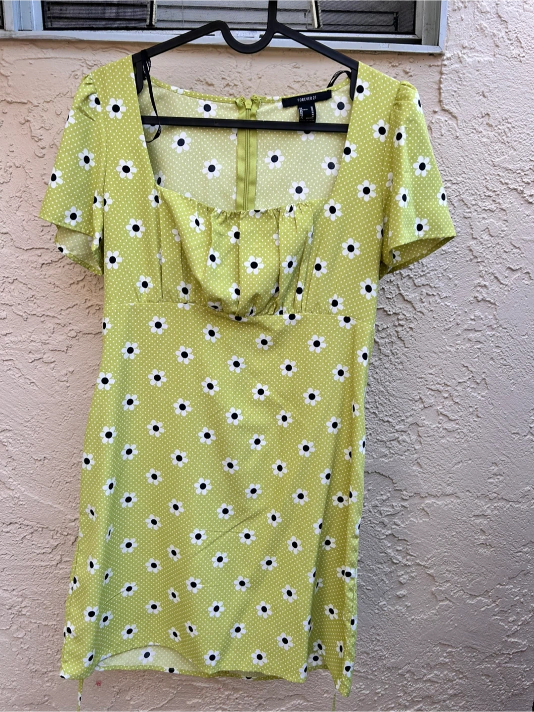 Selling a cute dresses. It's perfect for spring or summer. The dress features a square neckline and short sleeves.