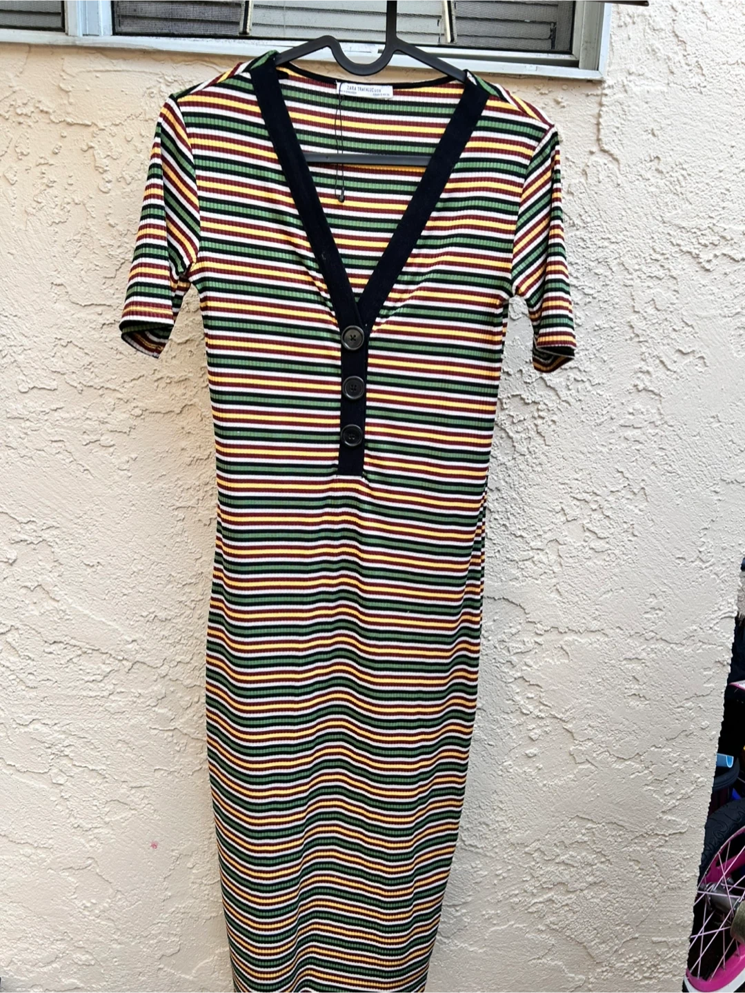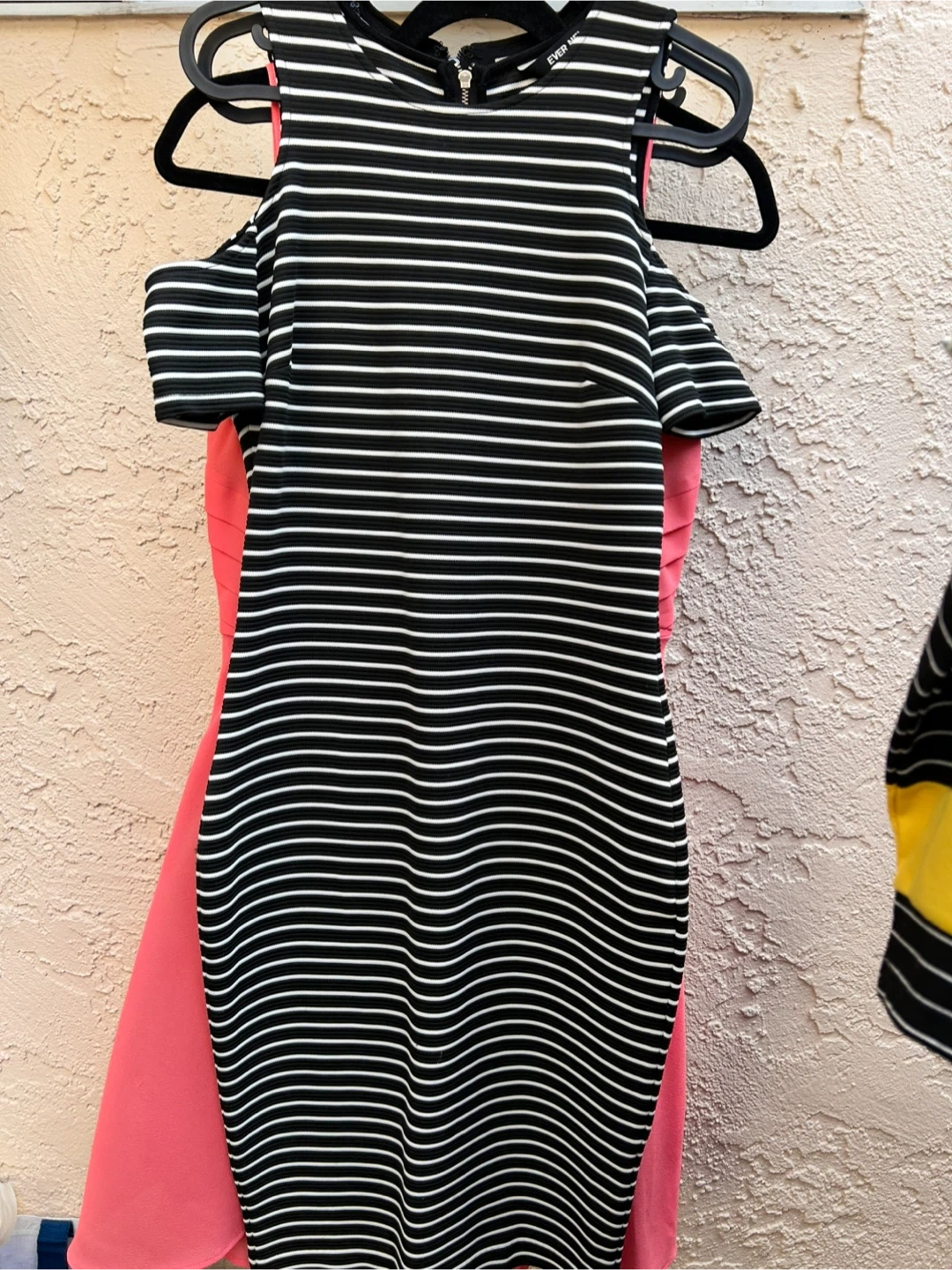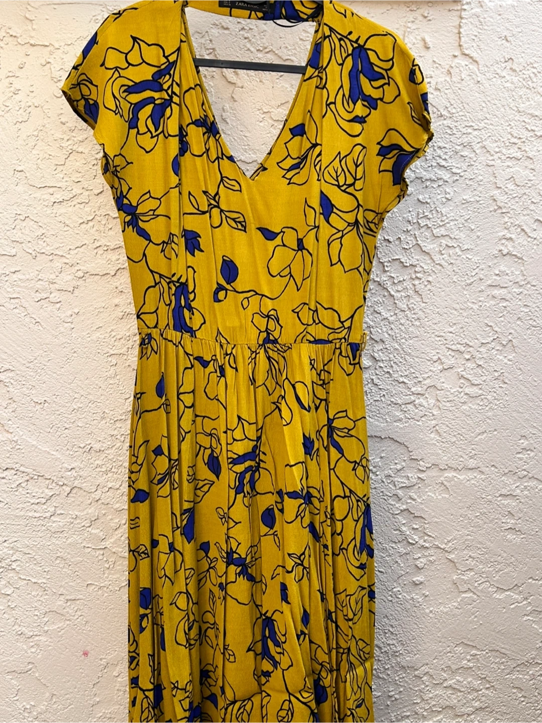 Selling a cute dresses. It's perfect for spring or summer. The dress features a square neckline and short sleeves.