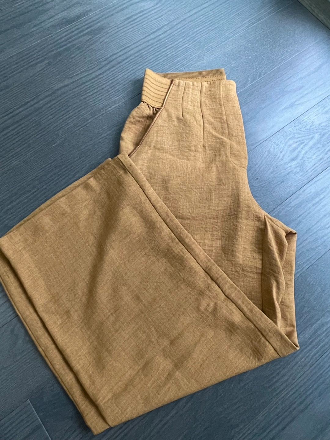 Wide leg trousers, Mustard yellow colour Linen blend fabric, very breathable perfect for summer. Has an elastic waistband Size 55, fits like size 4 Bought in Korea, never worn