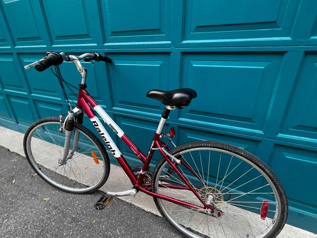 This is a Raleigh Prism bicycle, perfect for commuting or leisurely rides around town. It offers a comfortable ride and reliable performance for various terrains. This bike has been ridden but is still in good condition. It has some cosmetic wear and tear but it doesn't affect the bike's functionality. Reliable and Ready to Ride! Here are some additional details: * Brand: Raleigh * Model: Prism * Type: Hybrid/Comfort Bike * Frame Size: Medium 26inch tires (Unisex) * Number of Gears: 21 * Shimano shifters * Alloy rims If you're seeing this ad, the bike is still available, ready for its next adventure!