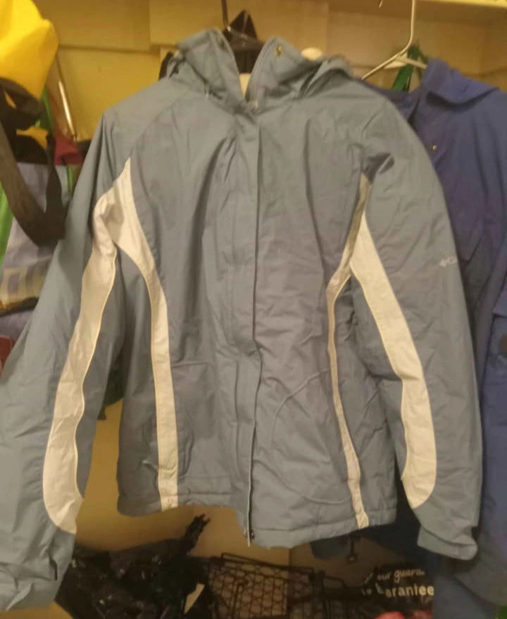 Blue and white women's jacket. Features a hood and zipper closure. Good condition. Size xl $30 pickup only West end Halifax