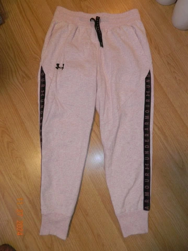 These Under Armour joggers are perfect for lounging or working out! They're a soft pink fleece material and in great condition. Size medium. WOMENS UNDER ARMOUR HI RISE JOGGER...size M...EUC they are a light heathered pink