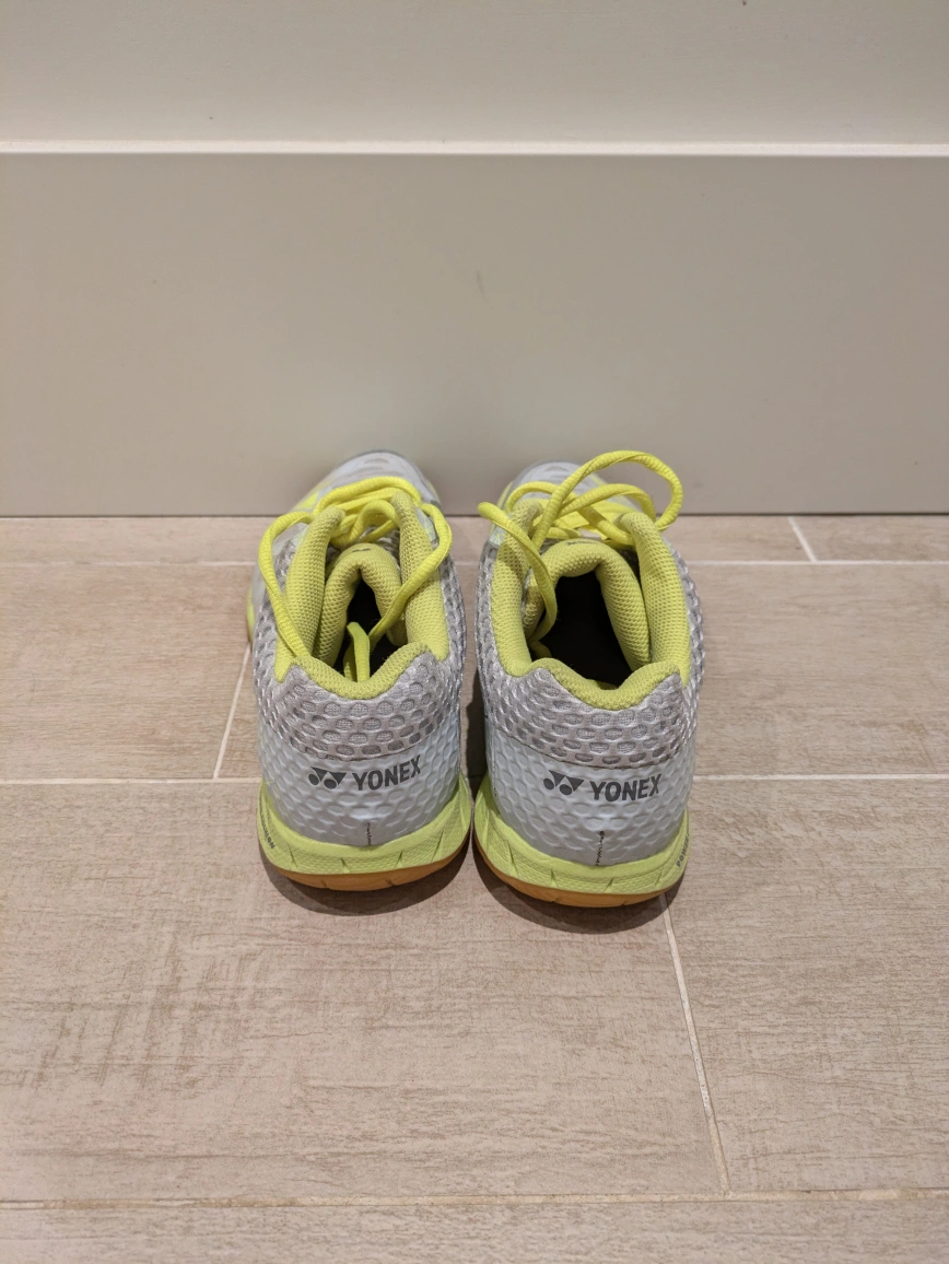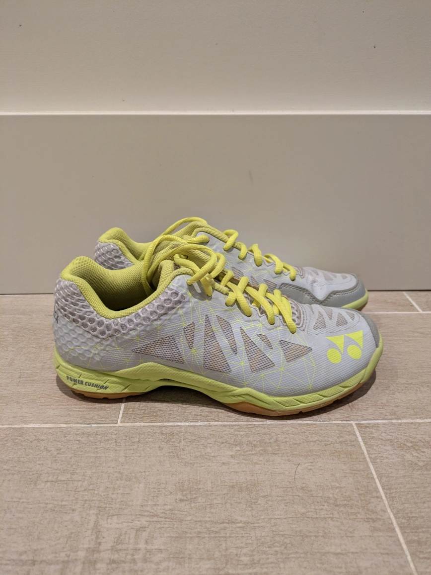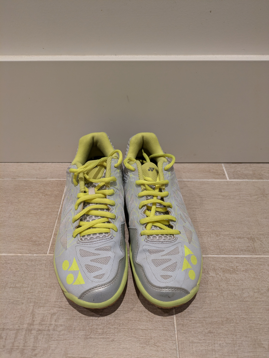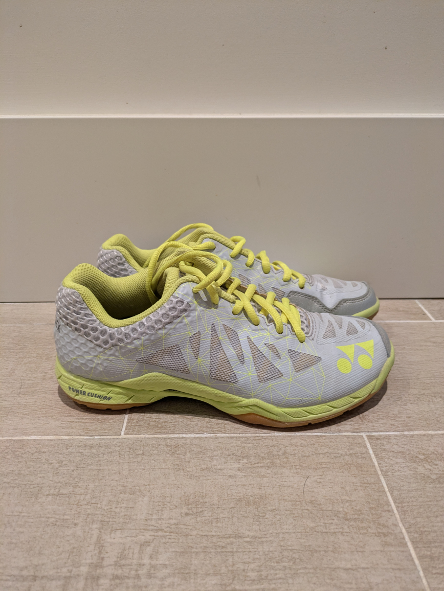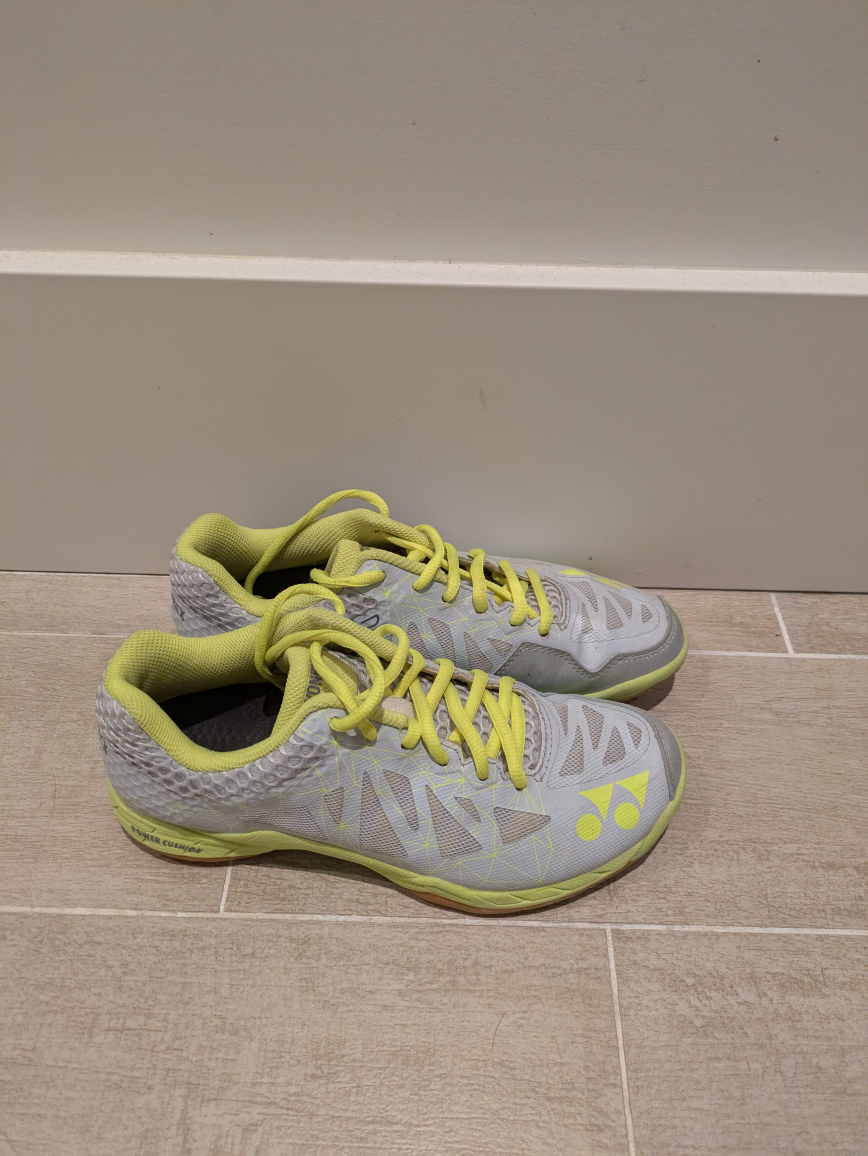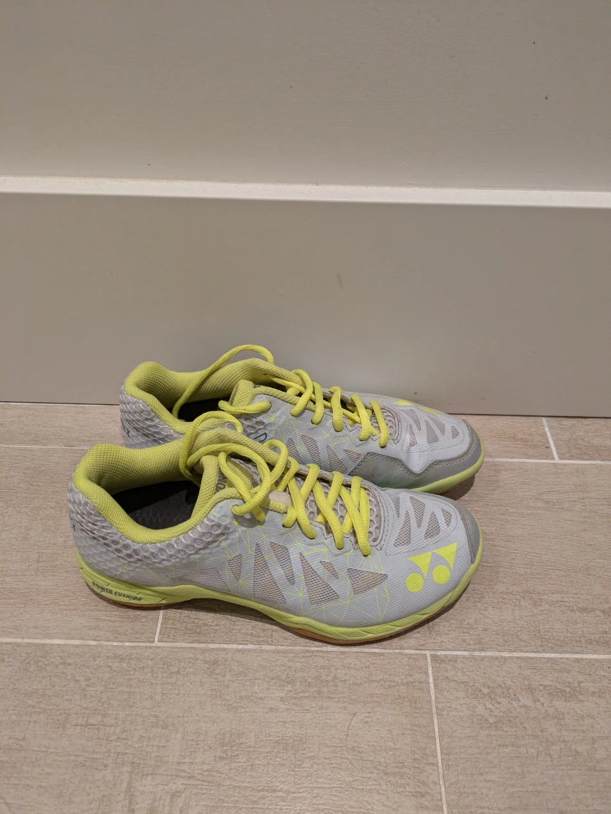 Barely worn. Good for Badminton/Squash/Pickleball/Courts. Grey/Yellow. Size 7.5 Able to meet in Richmond near Skytrain stations as well.