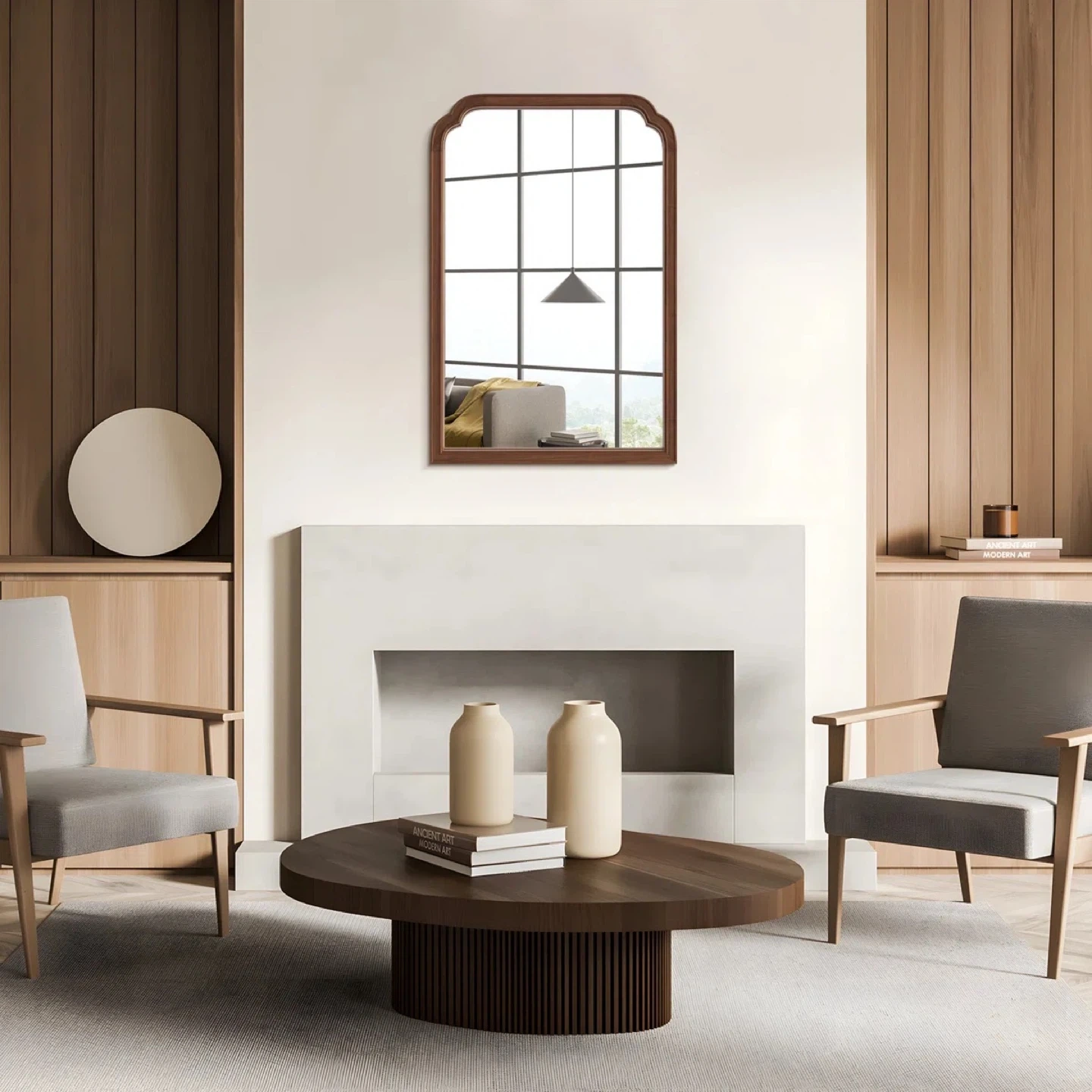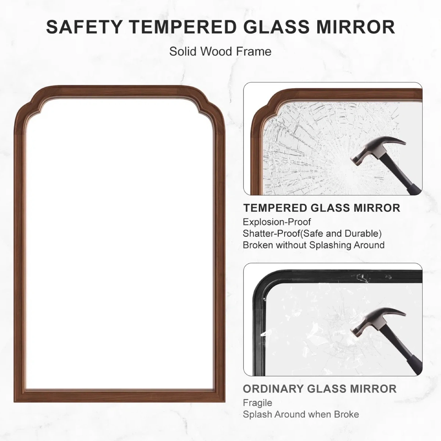 This is a safety tempered glass mirror with a solid wood frame. It's explosion-proof and shatter-proof, designed to be safe and durable. Even if broken, it's made to prevent splashing around