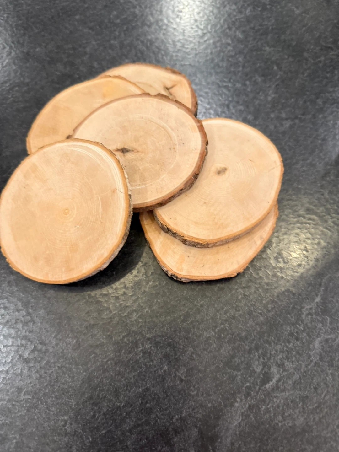 Selling a set of wood slices, perfect for various craft projects! They have a natural wood finish and are in great condition, ready for your creative touch