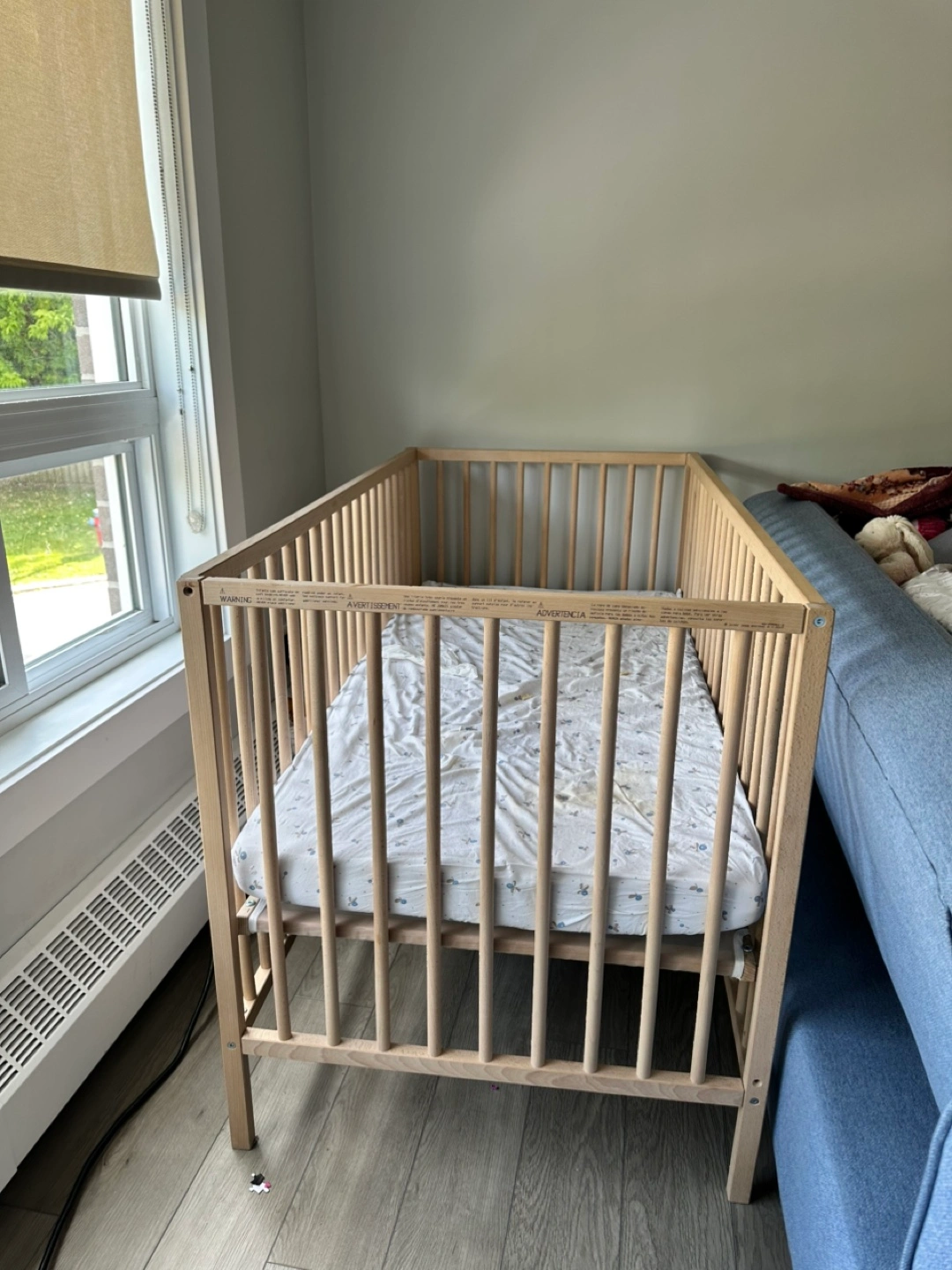 Selling a wooden baby crib used . The crib is in good condition and ready for a new home! It comes with a mattress.