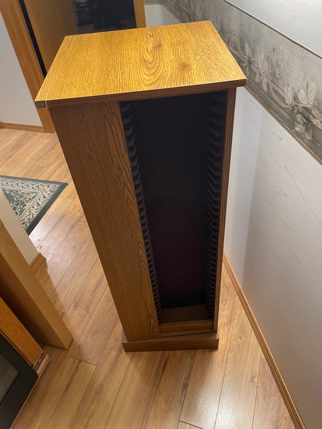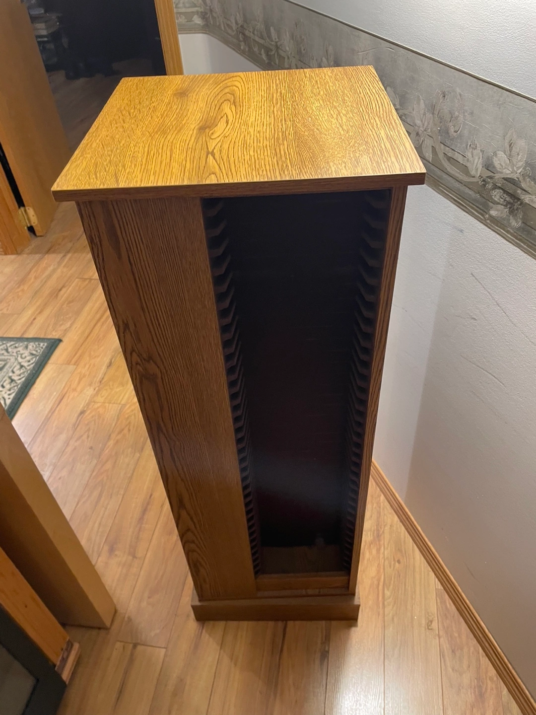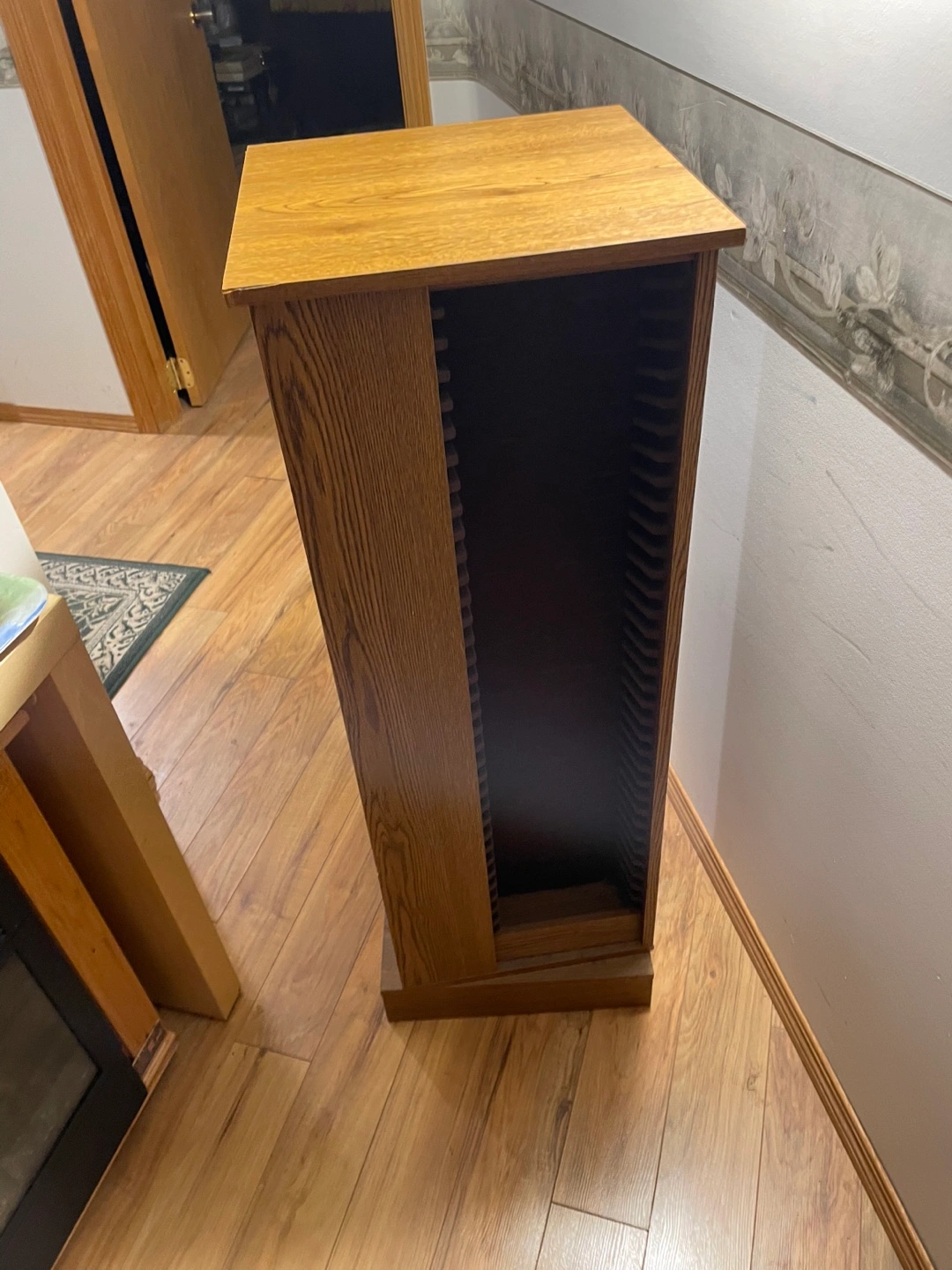 Selling a wooden storage tower, holds about 105 DVDs perfect for organizing your CDs or DVDs. It's in great shape and ready to find a new home. The wood has a nice, warm tone that would fit well in many rooms. It's a great way to keep your media collection tidy and accessible cash only please no e-transfers thank you