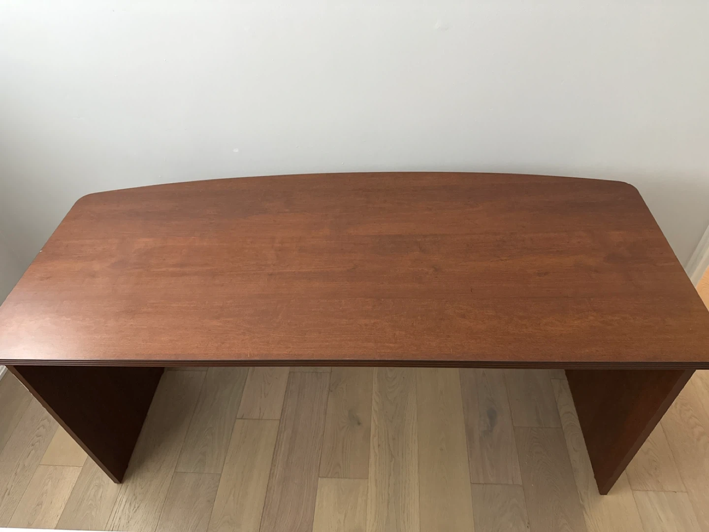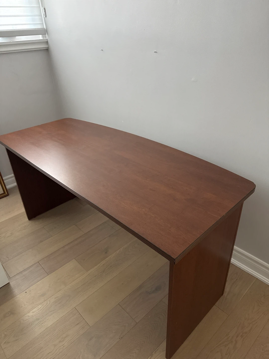 Selling a wooden desk in good condition. It measures approximately 70cm in depth and 165cm in length. Perfect for a home office or study space! We are remodelling our office/ mutilfunctional space. This desk will be unassembled for easy pick up.
