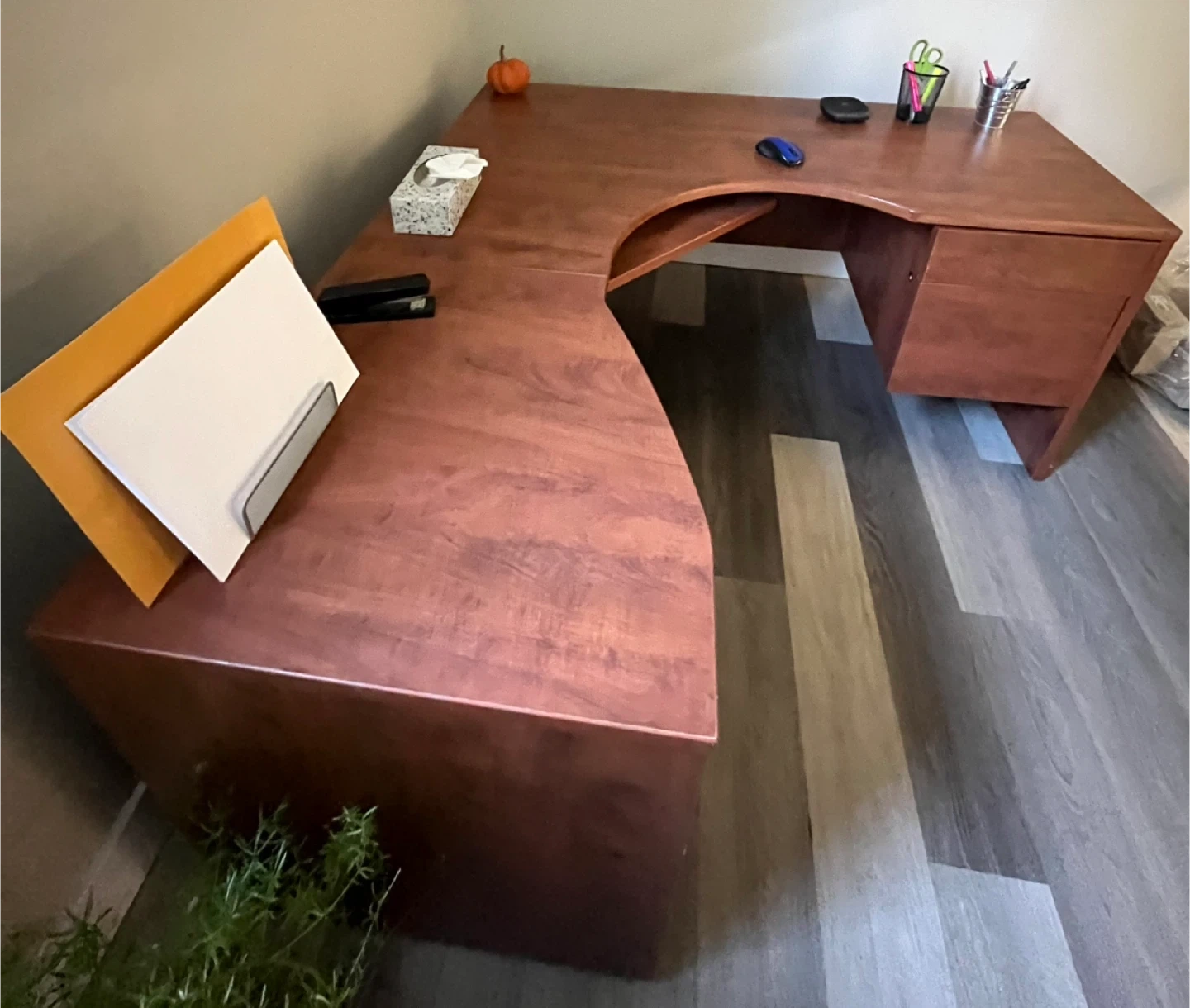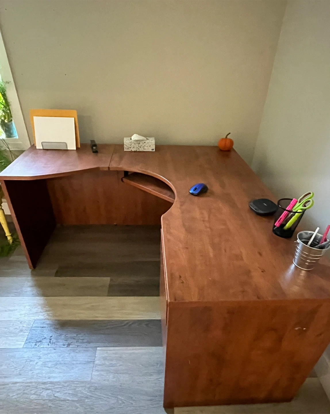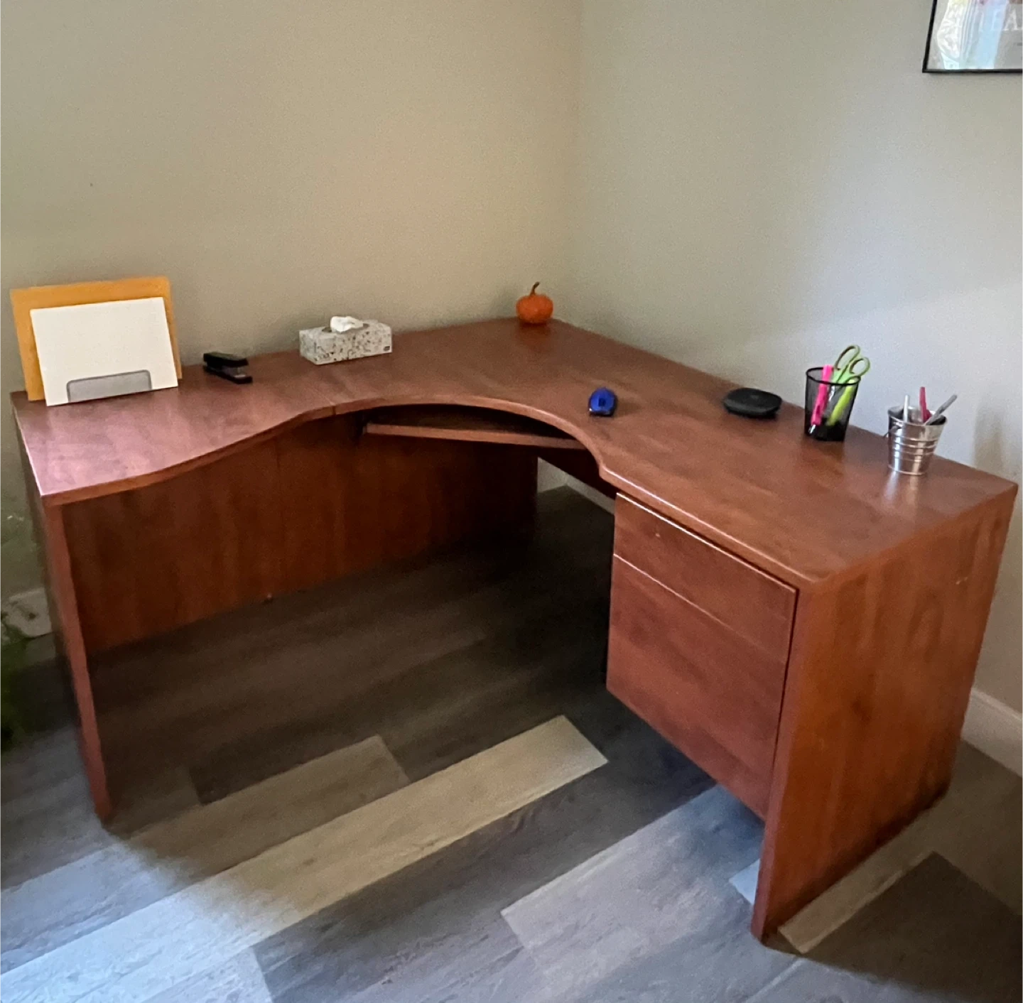 Selling a lovely wooden desk! It features a convenient keyboard tray and a built-in drawers for storage. It's in great condition and perfect for a home office or study space. It's a great piece to add to your home! Extension is removable.