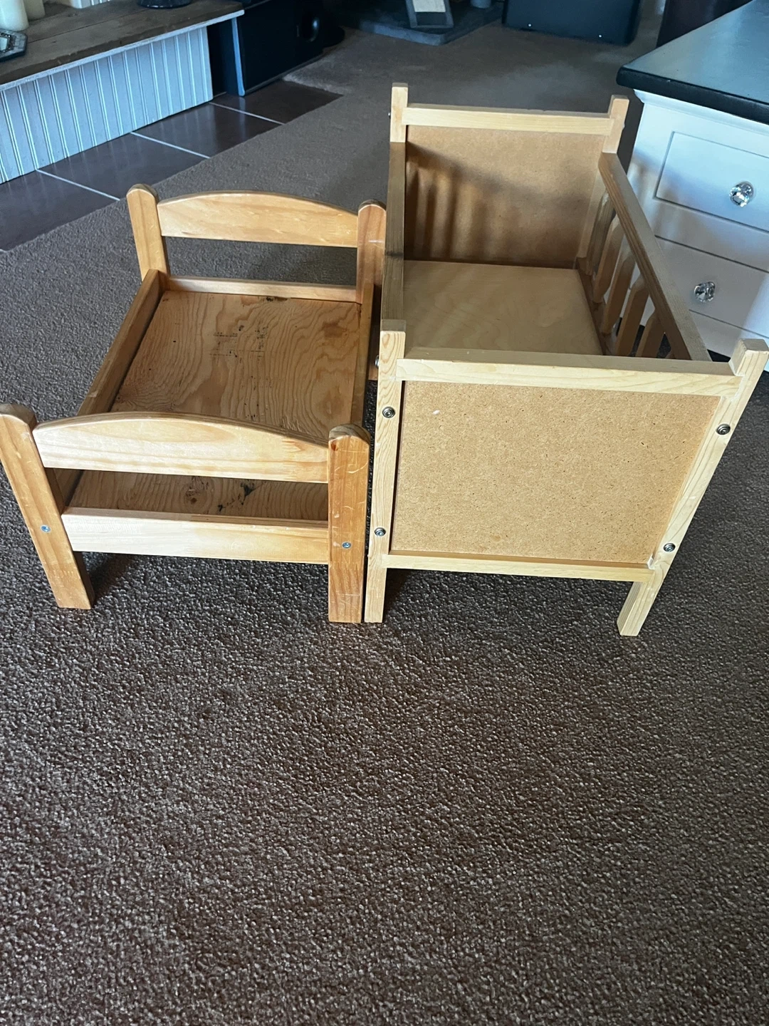 Selling a charming wooden doll bed and crib set. These are perfect for your little one's dolls or teddy bears. They're in good condition and ready for a new home. Great for imaginative play! $20 each obo