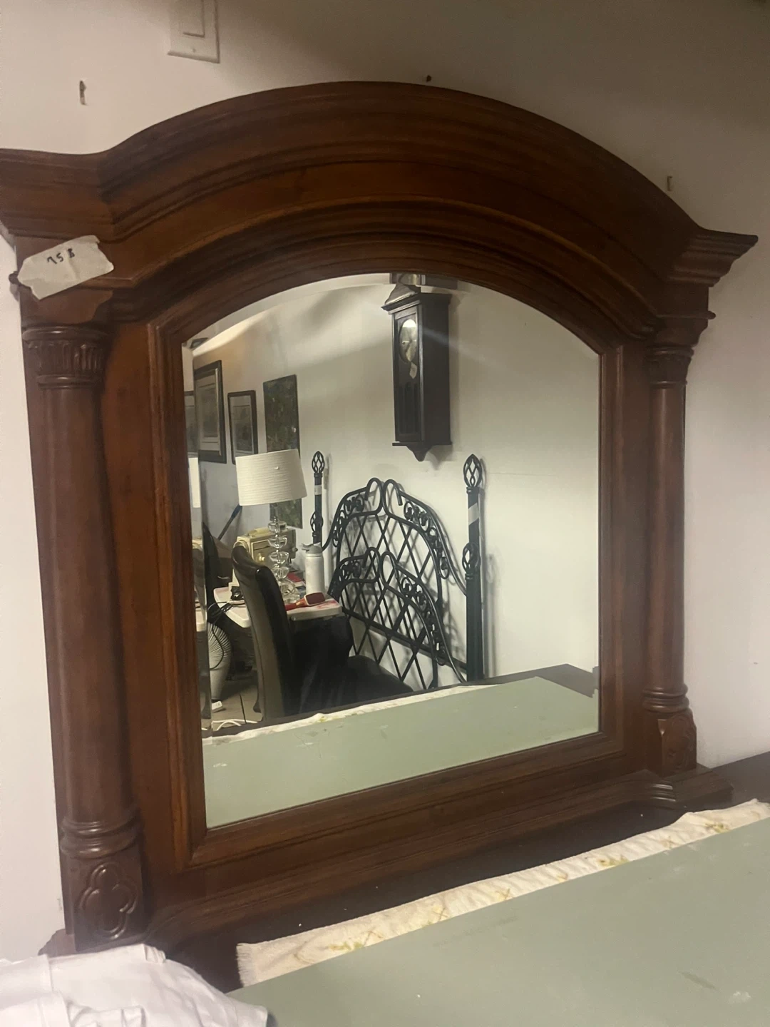 Here is a lovely wooden framed mirror! It would be perfect for any room in the house or above a fireplace. Bevelled glass and solid wood frame