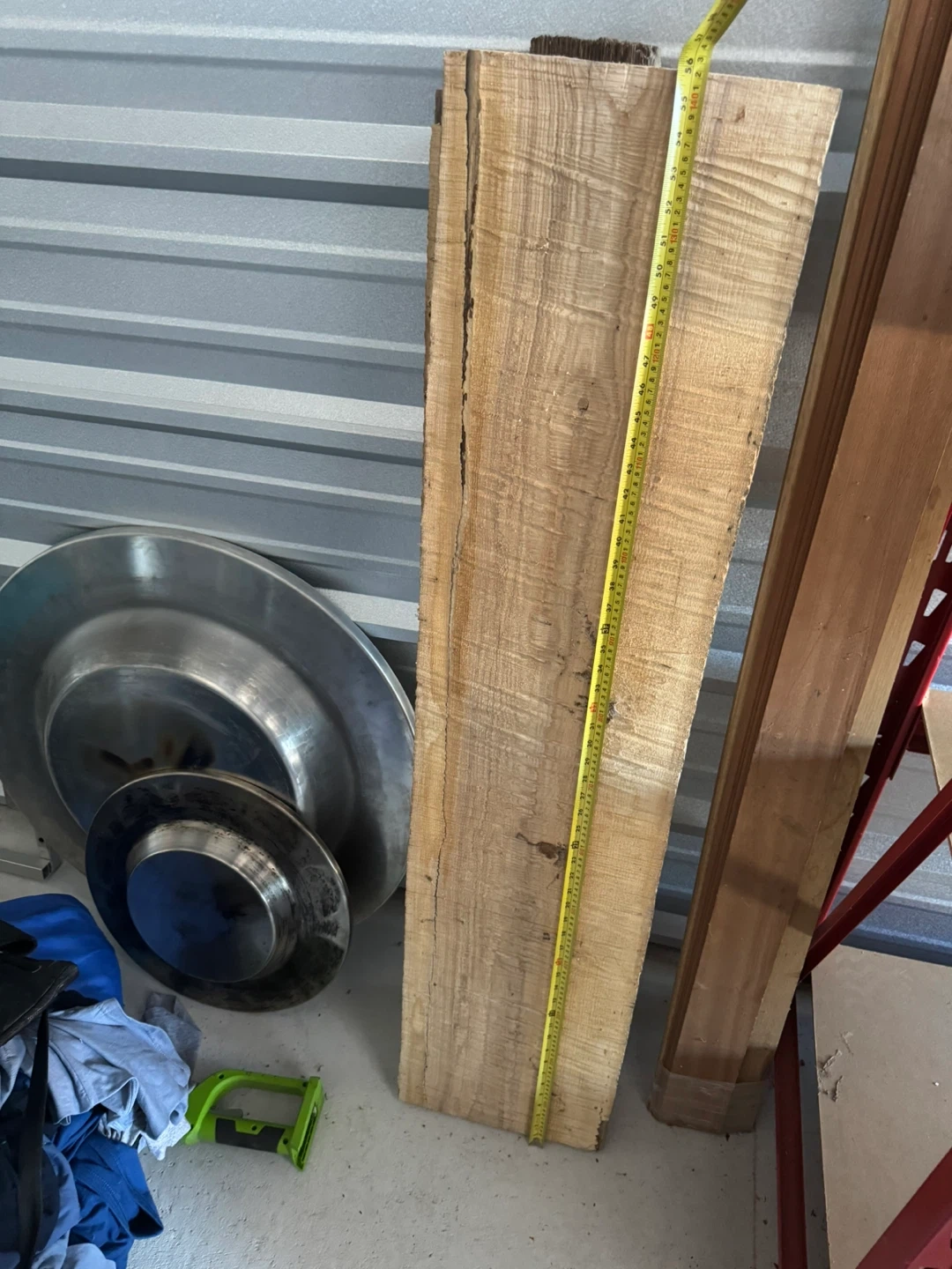 Selling a wooden slab, approximately 14 inches wide. Great for woodworking projects or DIY furniture!
