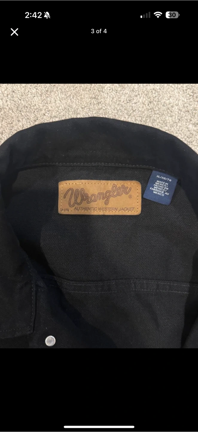 Selling a black denim jacket from Wrangler in size XL. Purchased incorrect size and cannot return. It's in great condition and ready for a new home. Perfect for layering or wearing on its own! Niagara Falls Pick up only Cash only Willing to hold Willing to bundle OBO