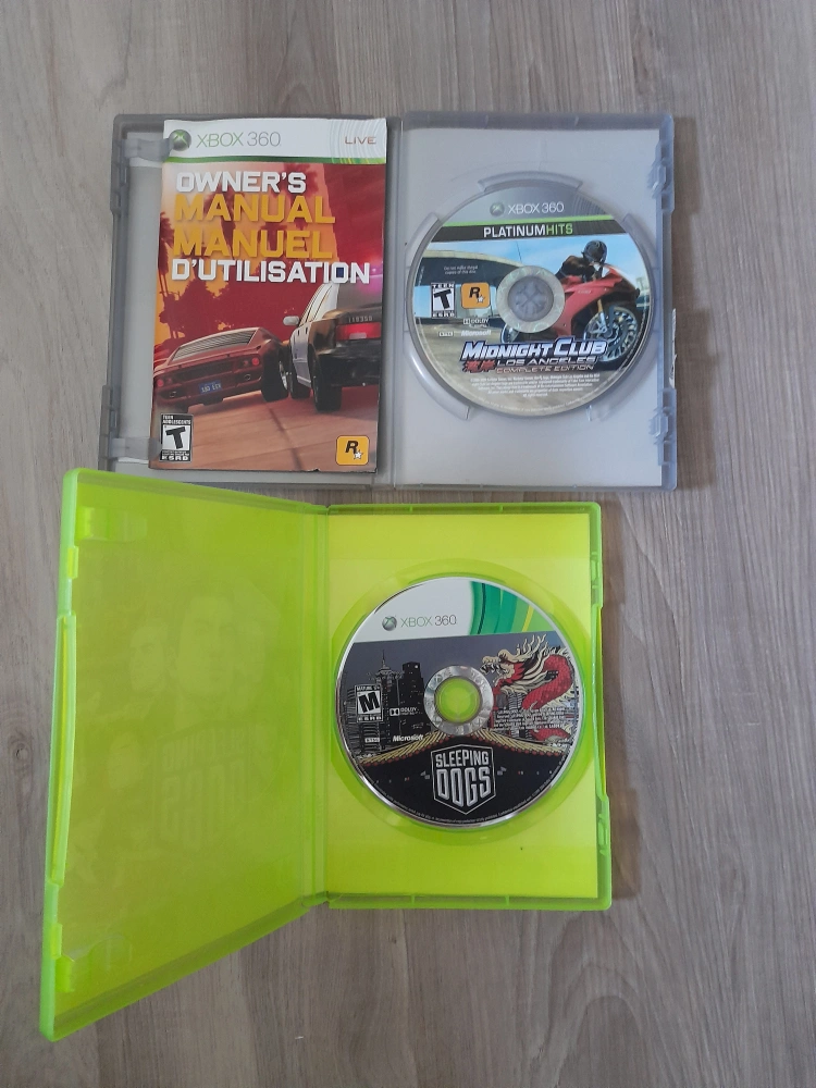 Selling two Xbox 360 games: Sleeping Dogs and Midnight Club Los Angeles Complete Edition! Both games are in good condition and come with their original cases and manuals if interested msg me pick up only thanks.