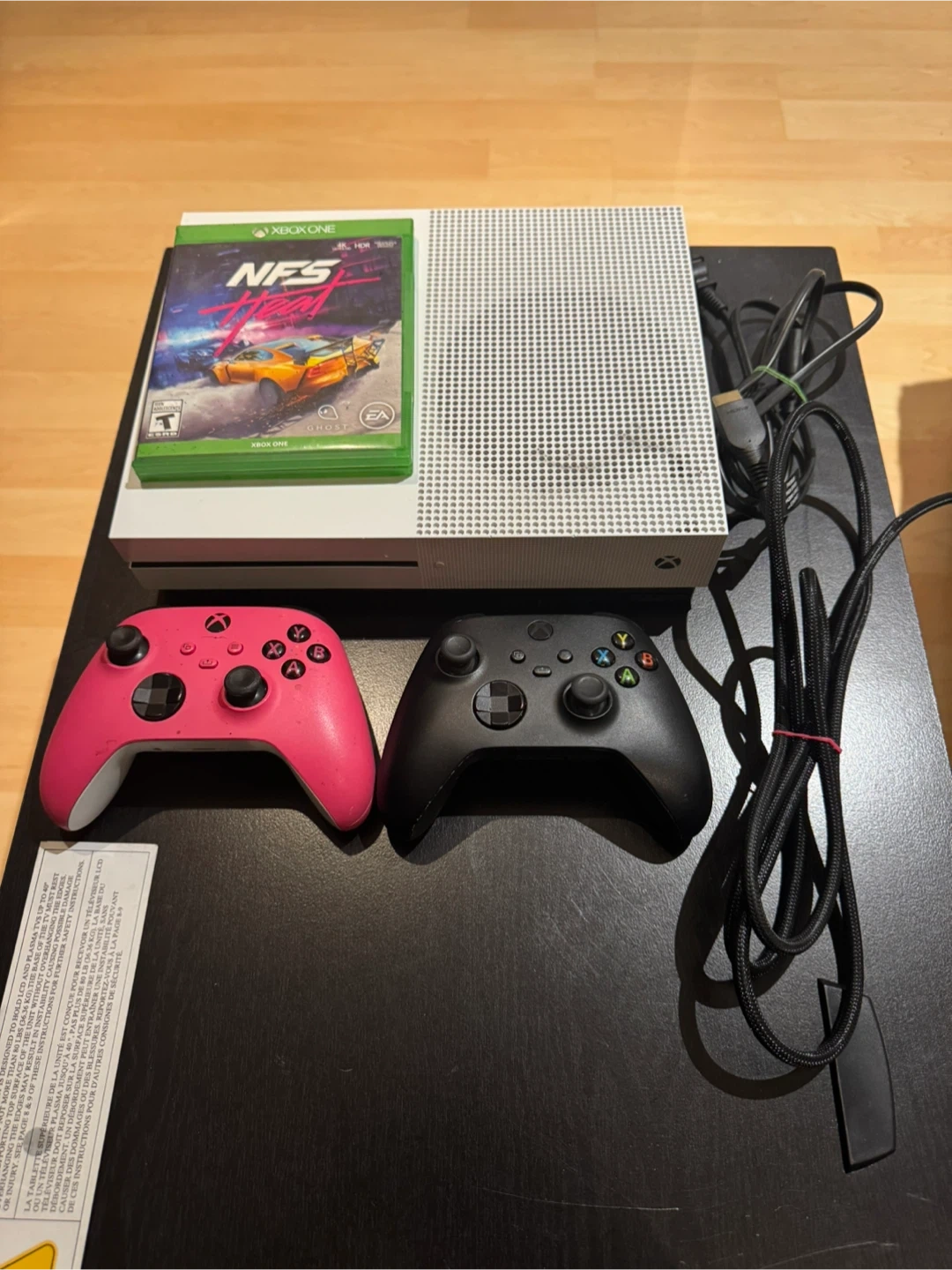 Selling an Xbox One S console. It comes with a controller and the necessary cables to get you gaming right away! Also included a Need for Speed.No issue everything works perfect