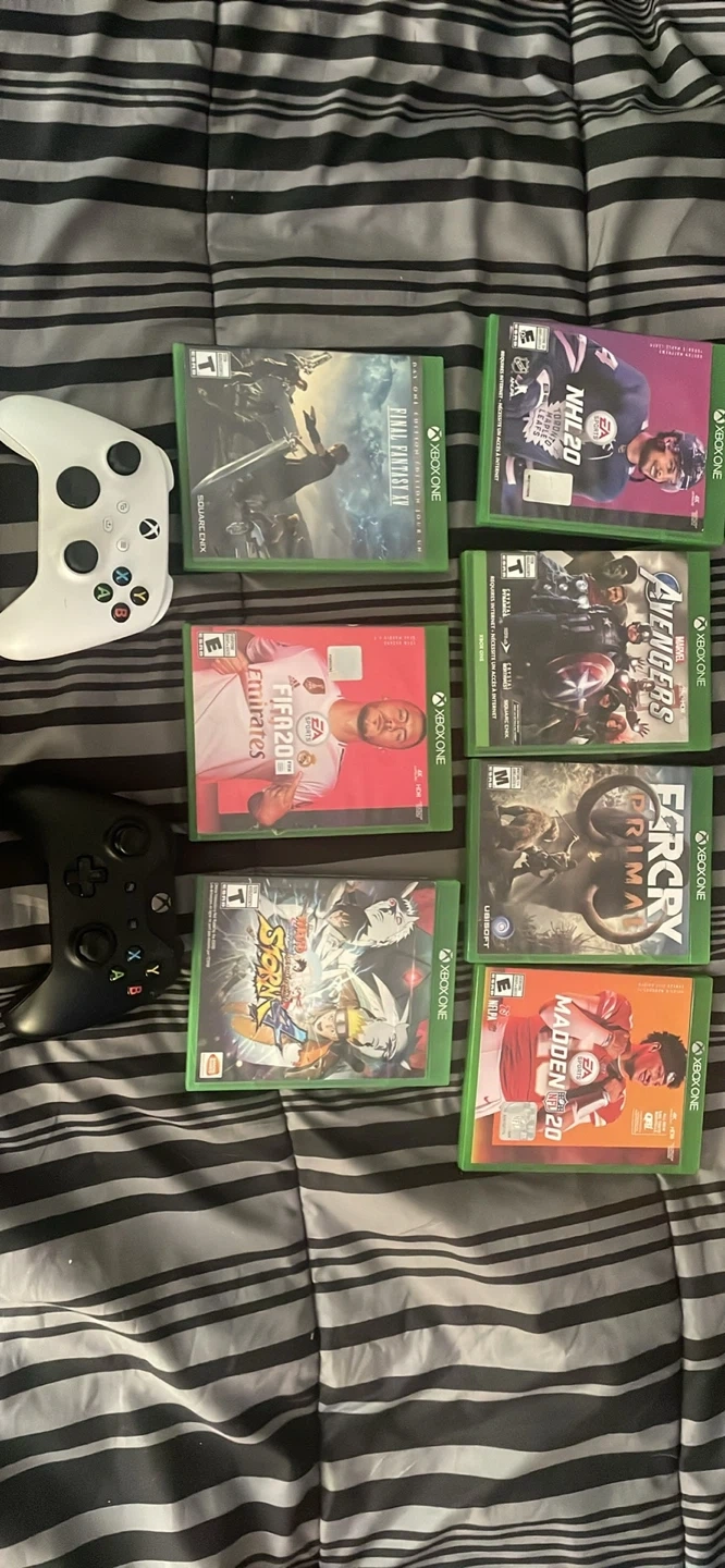 Selling an Xbox One X (1TB) console along with a selection of games and controllers. Includes two controllers (one black, one white) and several games for hours of entertainment. The white controller L3 doesn’t work but other than that everything works fine
