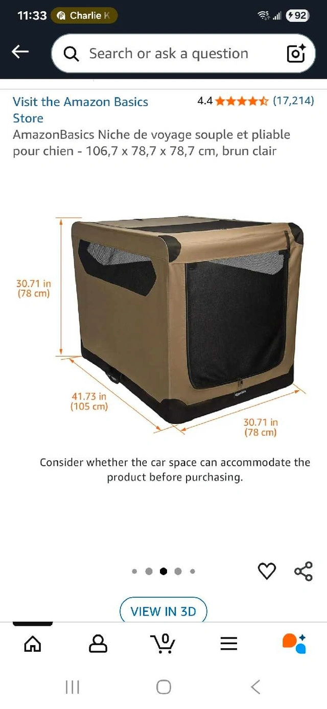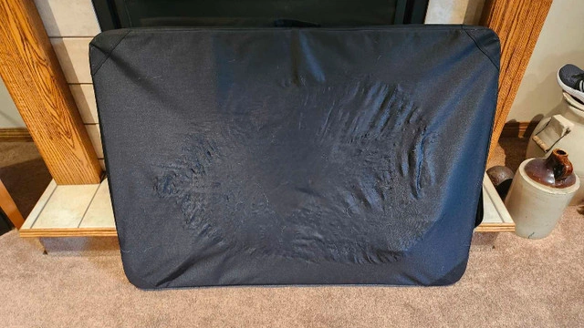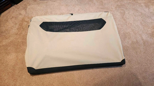 XL fabric dog crate. Very easy set up/take down. Light and easy to move. Has a buckle and carry handle. Some scratch marks on bottom but would be covered by a bed. Asking $75 obo