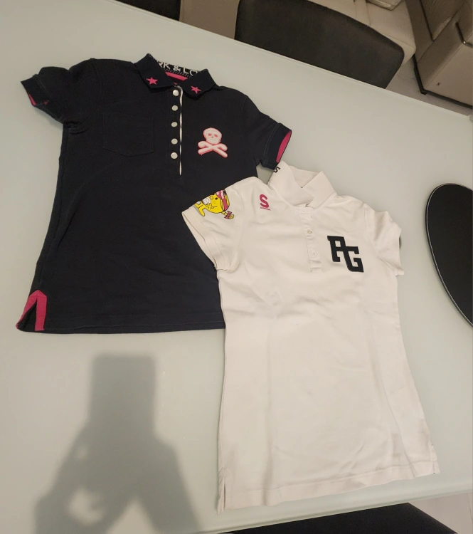 Two woman's polo golf shirts in EUC, used once each. Size XS, 0. Kept and maintained well. Dark on is from Mark & Lona, avg price goes for 200-300 usd. Size XS. Light one is from Pearly Gates, a well known Korean golf brand. Size 0. Dimensions are same for both. Price is for both items. Both super cute and high quality. NS NP home. Pick up in burnaby.