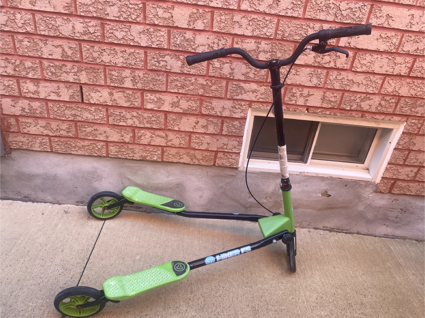 Selling a Y Fliker F1 scooter in green and black. It's in good condition and ready for some fun rides!