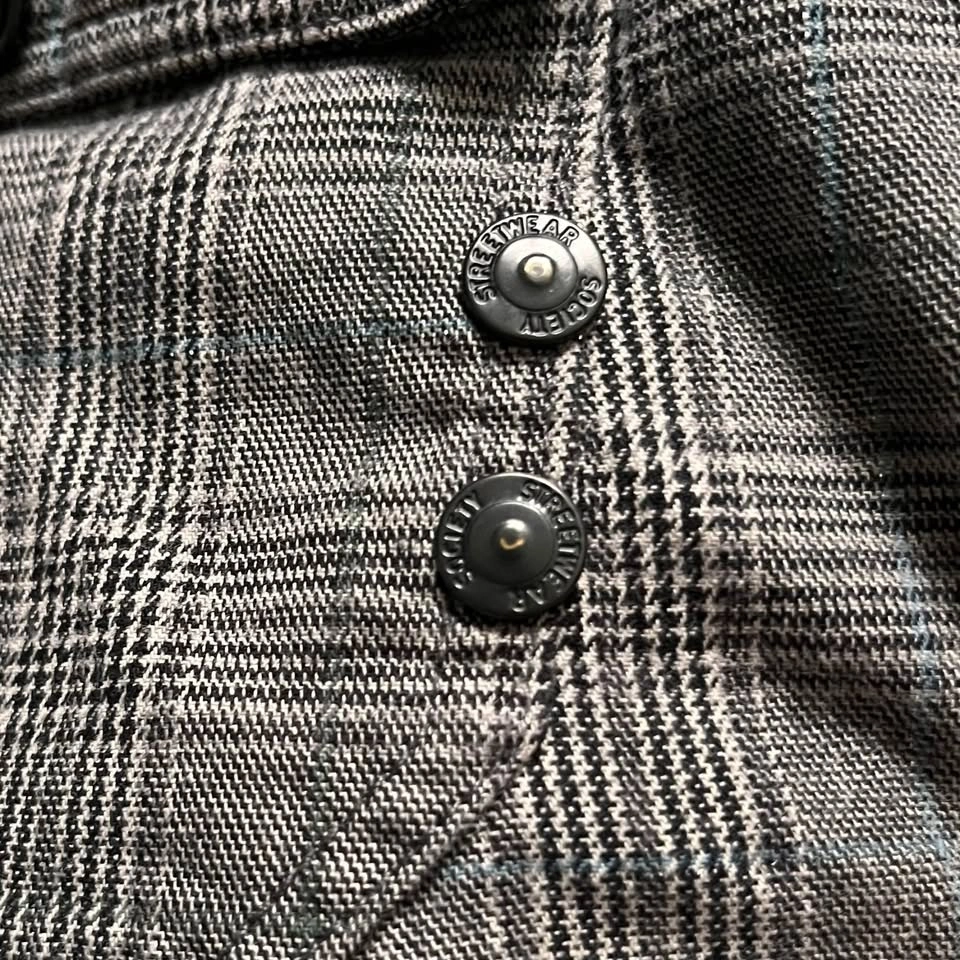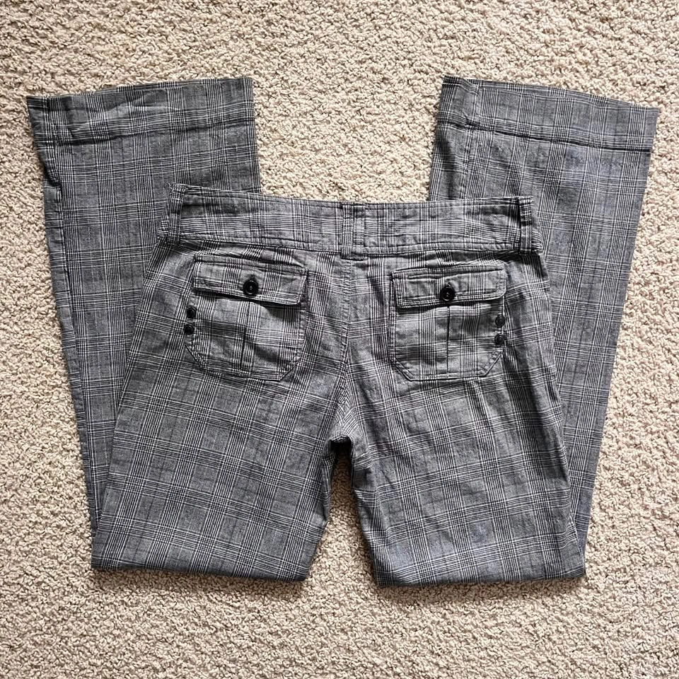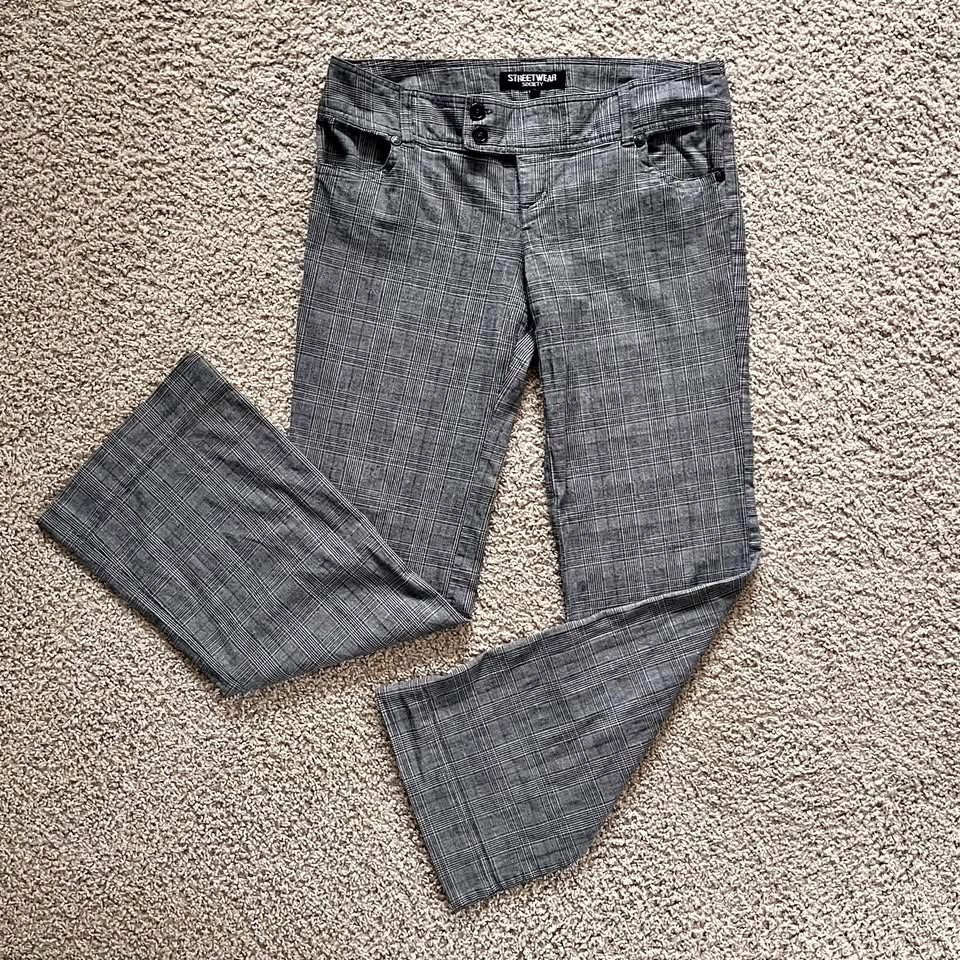 Vintage Streetwear Society light grey with subtle metallic blue dress / casual pants. Good pre-loved condition with some loose threads between the legs as shown in the photos. The model photo is included to illustrate style only. Looks great paired with a fitted baby tee or a cropped top and chunky boots or sneakers. Women's Size 13, fits approx. modern Women's Size 14 or XL (please check measurements to ensure fit). 95% Cotton, 5% Spandex Measurements are approx.: Length 107cm Waist 46.5cm Rise 22cm Inseam 84cm Cuff 27cm Porch pick up west Maple Ridge.