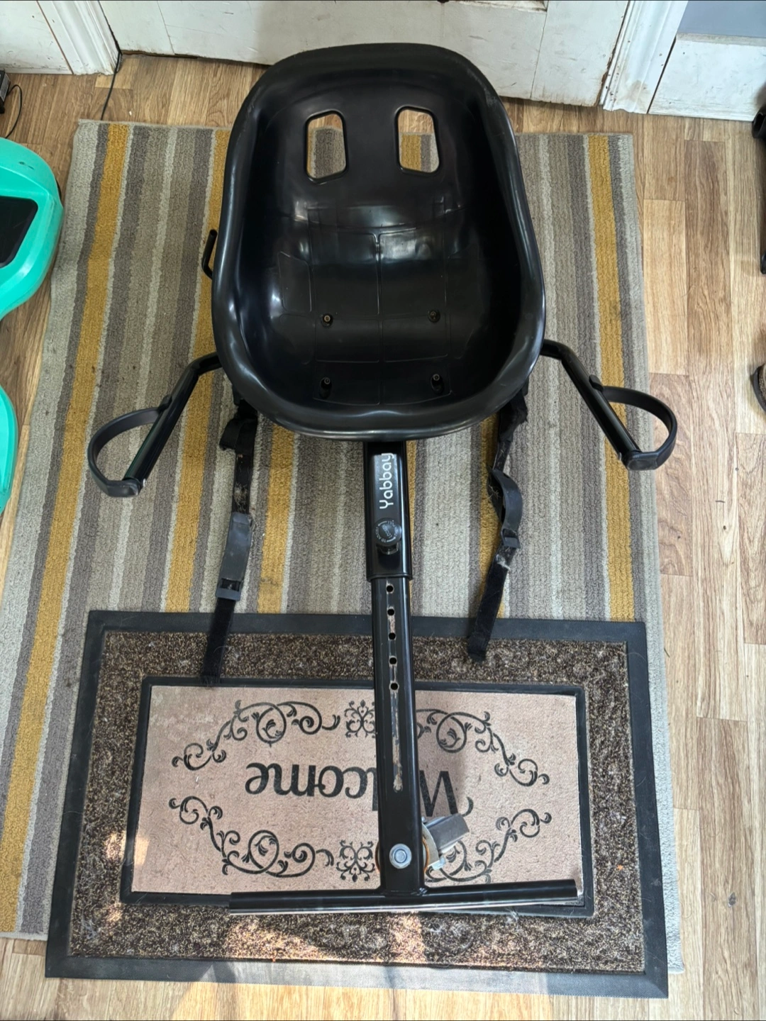Show allA Yabbay scooter seat. It's a black bucket seat with handles. Offers a comfortable seating experience.