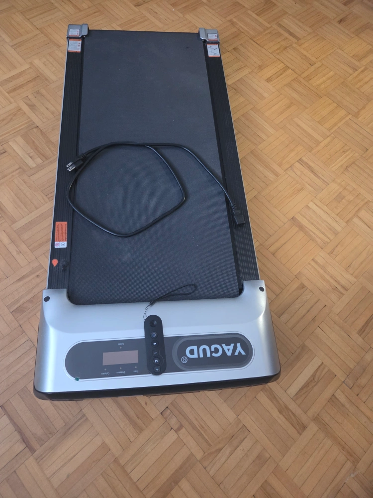 Selling a Yagud under desk treadmill. It's in great condition and perfect for getting some exercise while working from home. It's lightweight and portable, making it easy to store when not in use. Has wheels, making it easy to move around. Comes with remote and wire to plug and use.