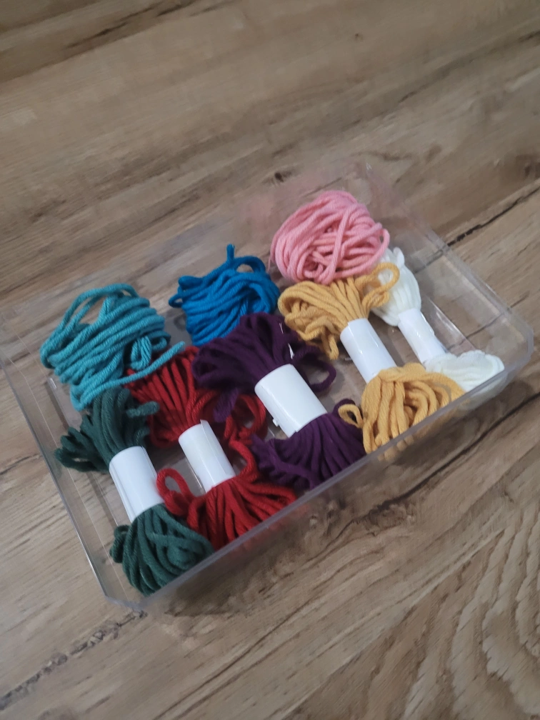 Selling a bundle of yarn in various colours! Great for crafting, knitting, or any yarn-based project. The colours include pink, white, yellow, blue, purple, red, and green. Perfect for adding a pop of colour to your next creation