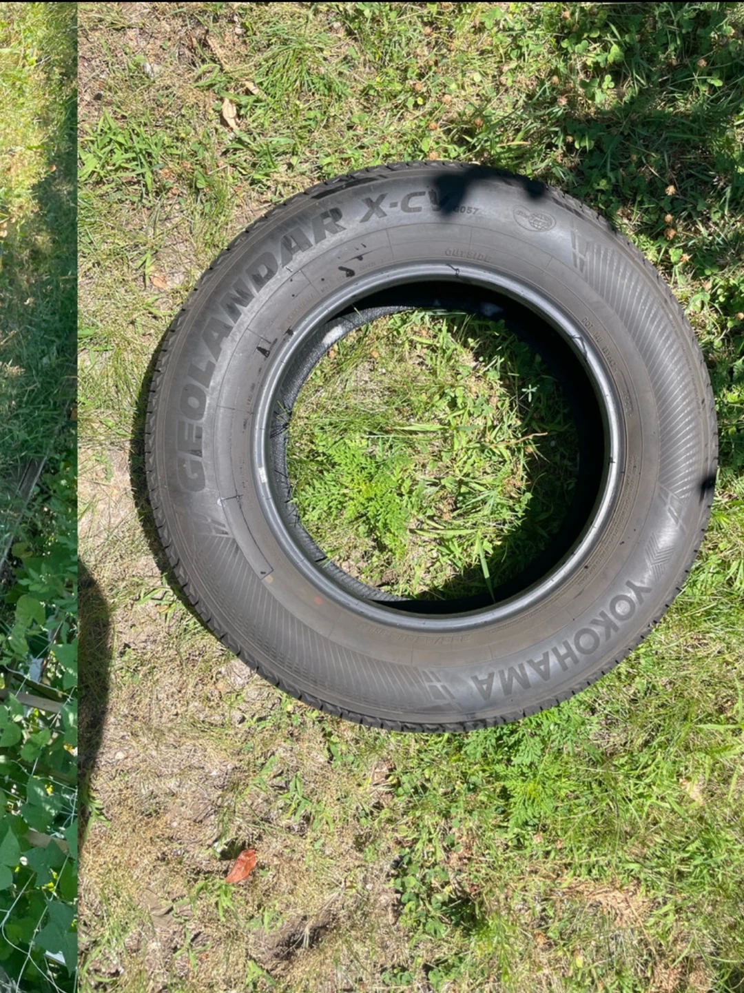 Selling a Yokohama Geolandar all season X-CV complete set of tires. It's in good condition and ready for a new vehicle! The tire is black. Used originally for 2024 Grand highlander
