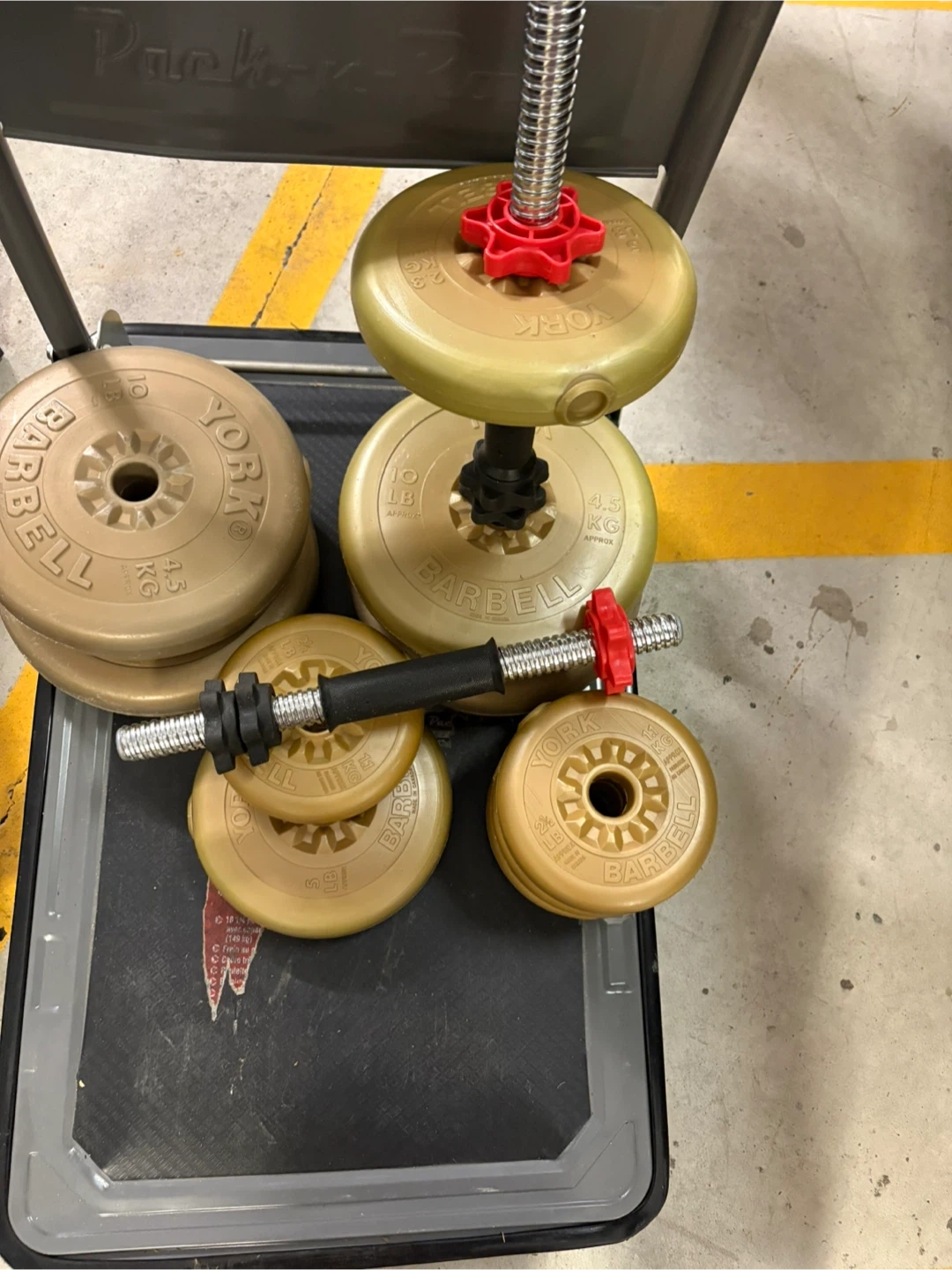 Selling a York barbell weight set. Includes various weight plates and barbell. Great for home workouts!