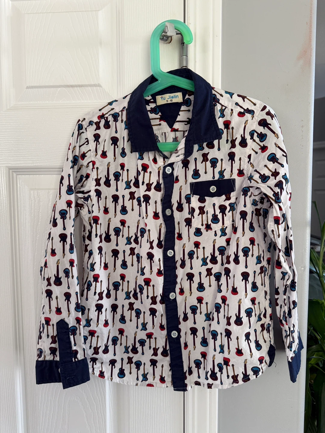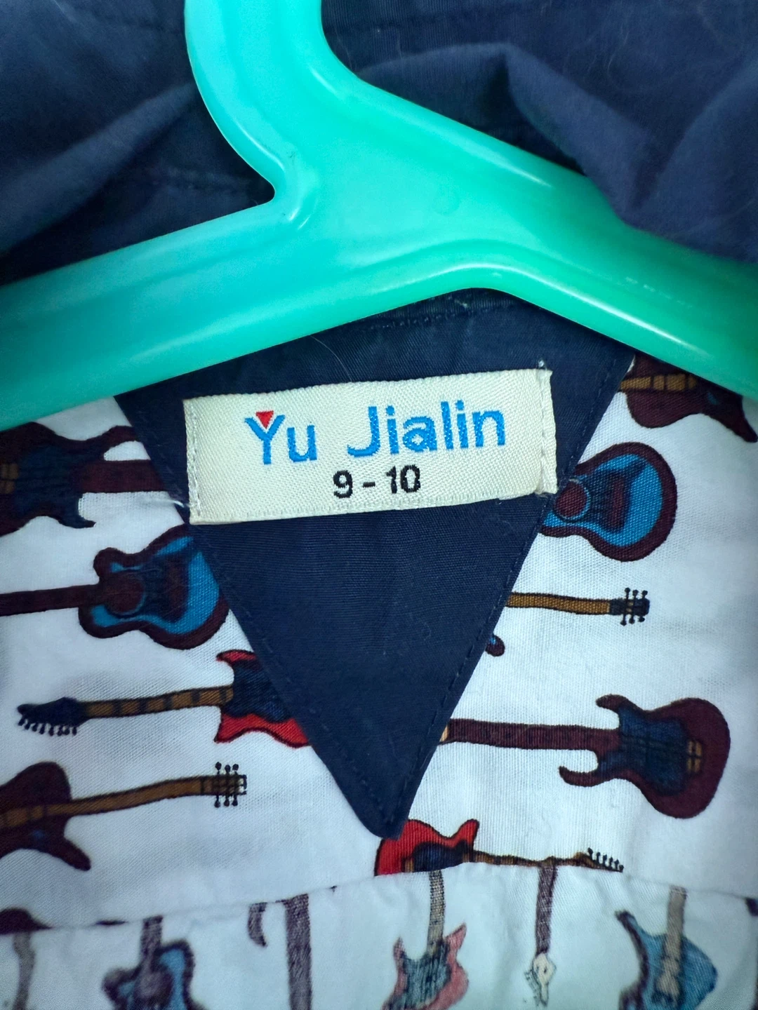 A cute Yu Jialin shirt, size 9-10! It features a fun guitar pattern, perfect for your little rocker. It's in great condition and ready for a new home